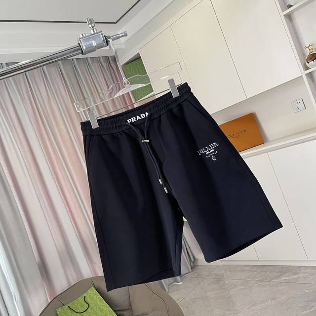 Prad* Prada 2025 new summer shorts personalized letter logo embroidery custom fabric 350G unisex style