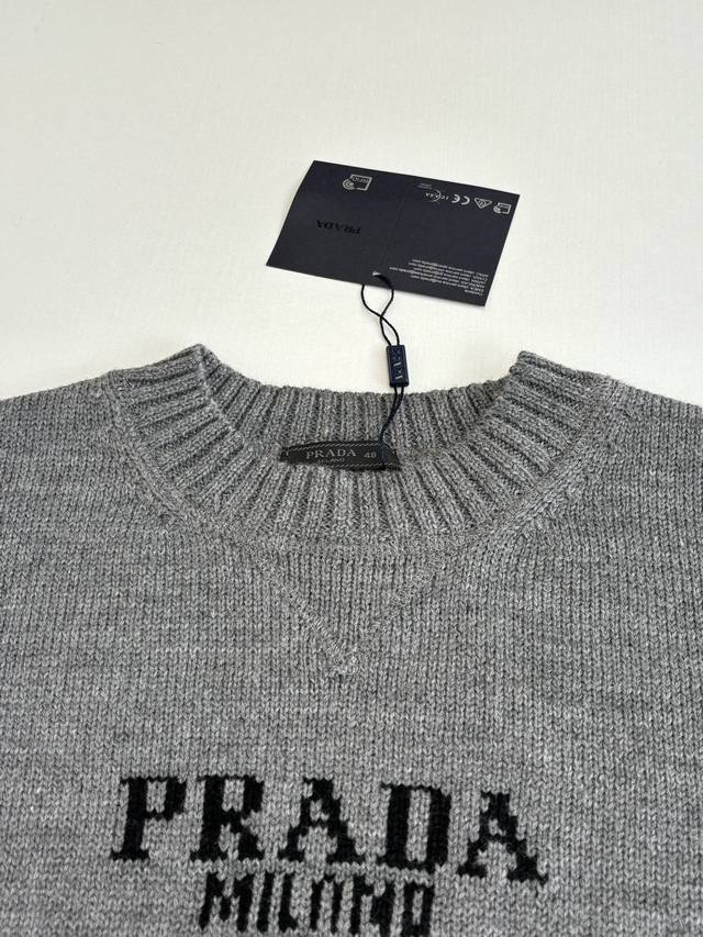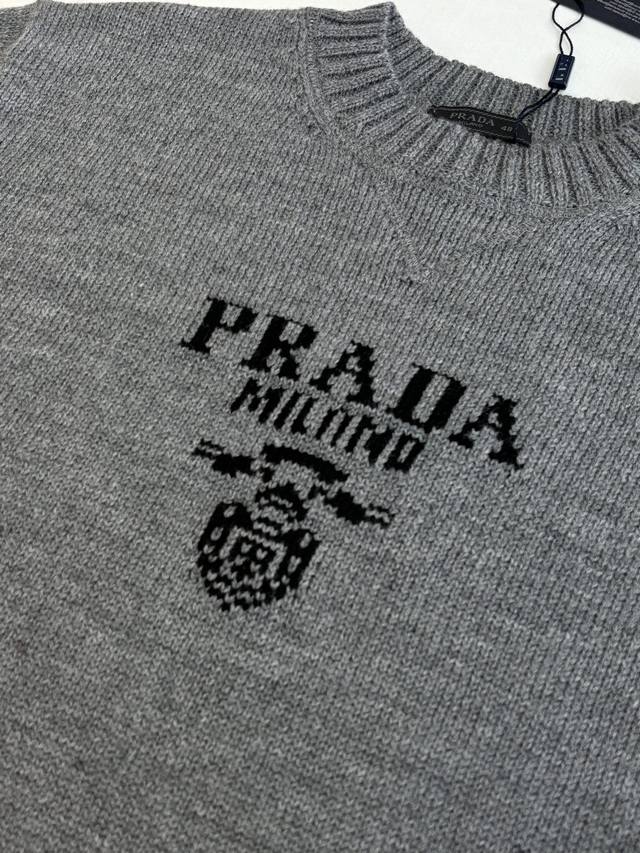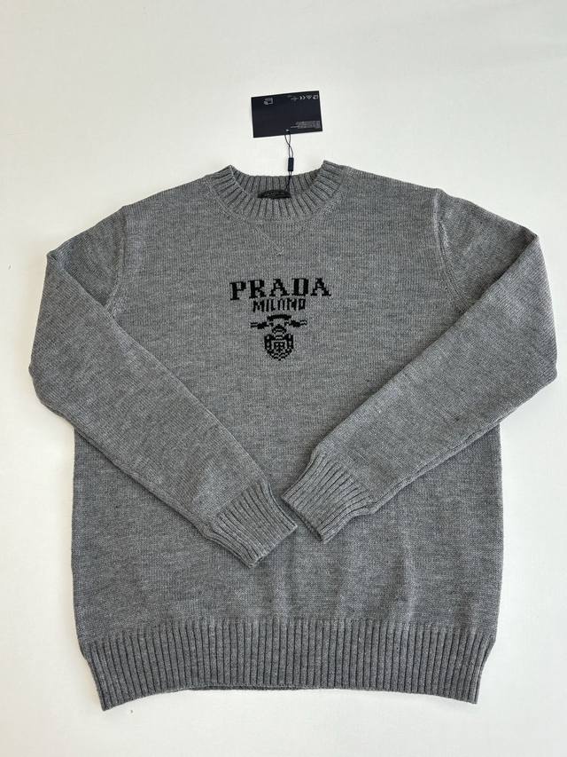 prad* Prada Jacquard Logo Knit Crew Neck Sweater DDD The fabric is made of 45% cashmere and 55% cotton yarn. Imported 7-needle machine for partial jacquard, five-thread stitching. Garment washing - wool impurity removal - color fixing - shape fixation. This regular-fit men's crew neck sweater is crafted from exquisite cashmere fabric. The iconic Prada triangle logo, always reinterpreted in a novel way, is embroidered, showcasing a distinctive brand style. The Fall/Winter collection portrays the modern man's image with a mix of streamlined and full silhouettes, presenting a perspective that is both in sync with and contrary to tradition. DDD Size: 48 50 52 DDD