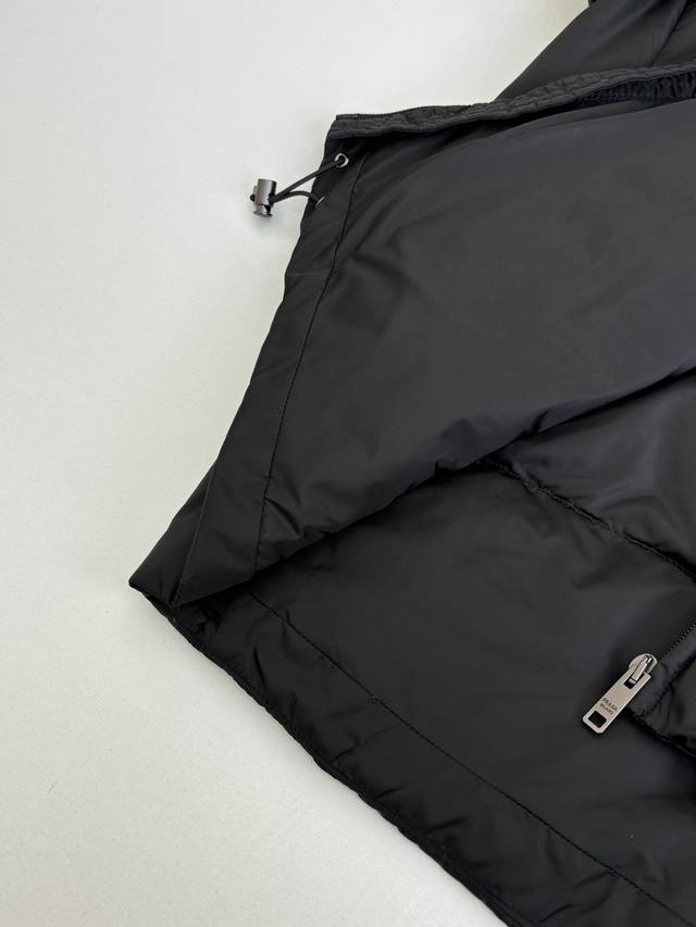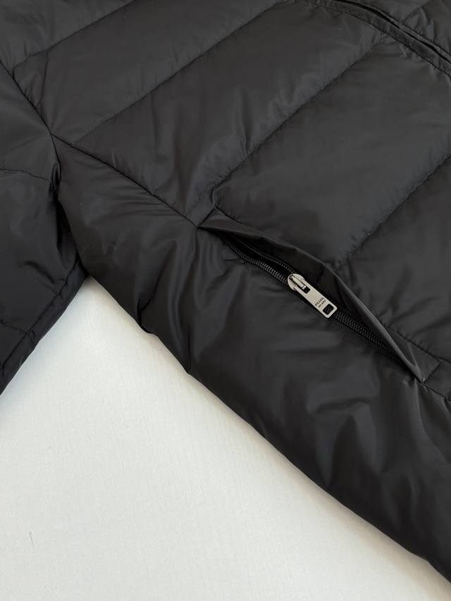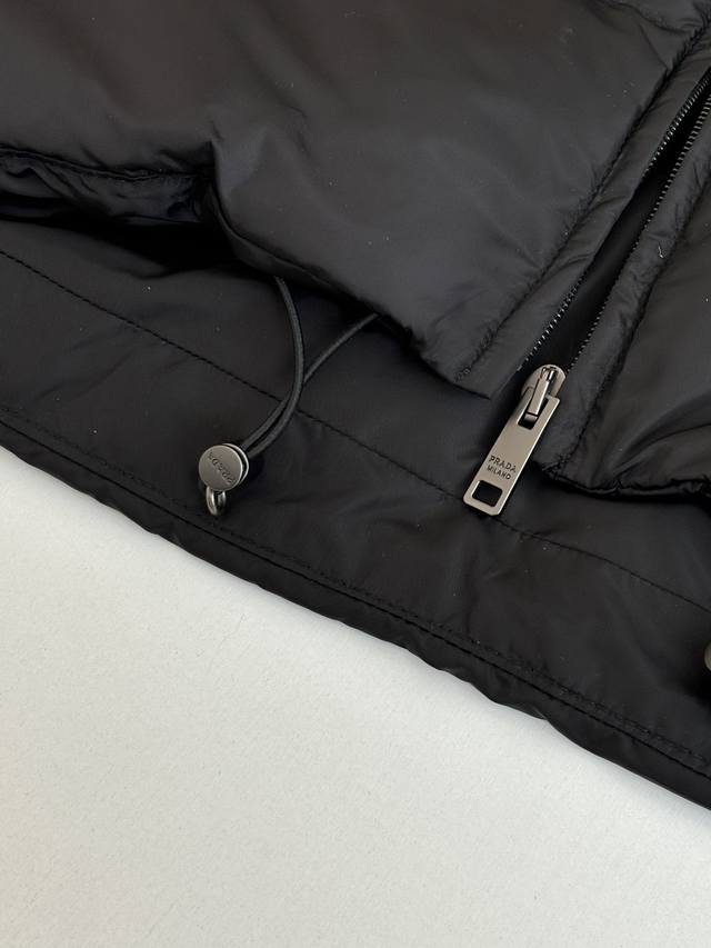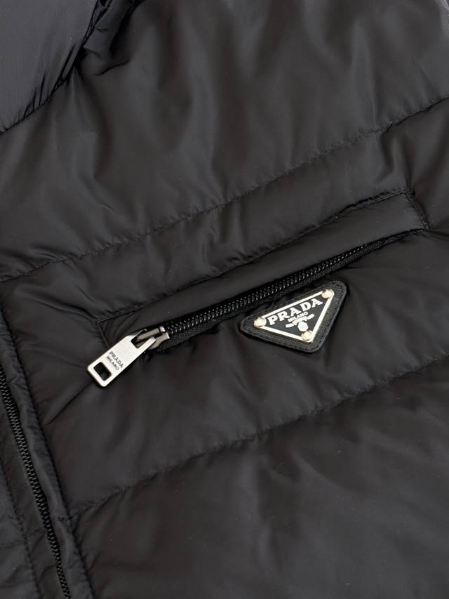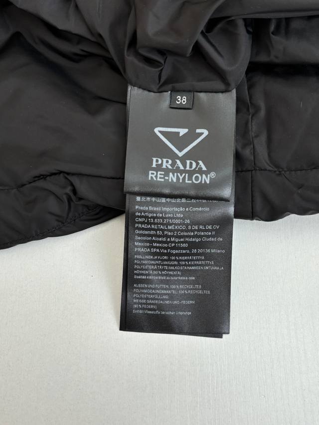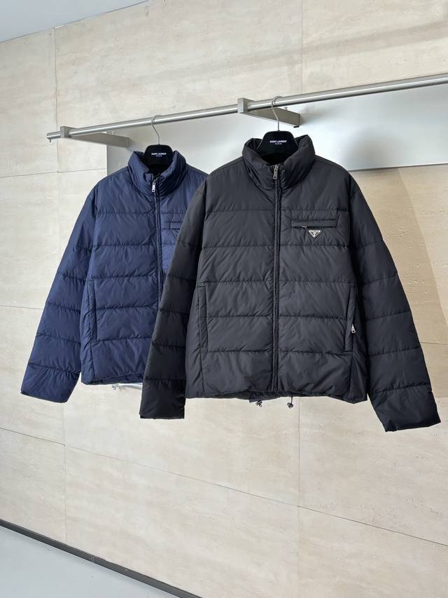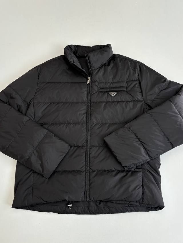 prad* Prada Re-Nylon Recycled Nylon Stand Collar Down Jacket DDD New model features brand new fabric. The triangular badge is an original small label purchased and developed. All items are synchronized with the latest version. Premium goose down filling and original factory-matched hardware. DDD The soft silhouette and wrap-around lines define this style, combining sporty style with fashionable details. Re-Nylon gives it functionality and a modern feel, while the filling adds extra warmth. This down jacket features a modern silhouette, blending sporty style with fashionable details. The casual design is accented with an enamel triangular metal logo, paired with a thick collar and goose down filling. DDD Size: SML XL DDD
