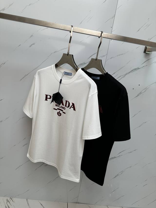 Prad'' top quality 2025 new short-sleeve top! Selected top quality original fabrics, soft to the touch. Top quality imported private goods, fashionable design and trendy short-sleeve top, without losing the luxury quality. Undoubtedly, the upper body effect is superb, the same style as the luxury official website! Size: M 3Xl