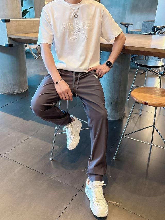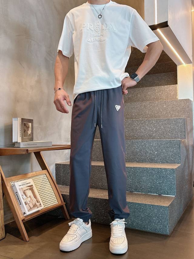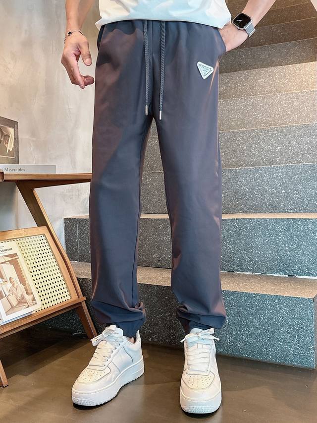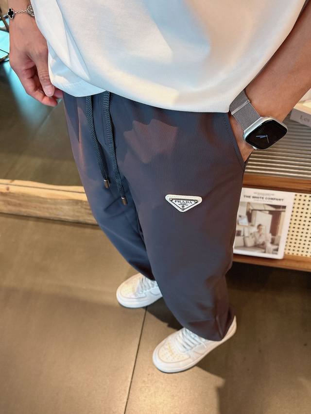 Prada, 2025 autumn and winter new products, fashionable casual trousers, counter simultaneous sale, original single hard goods, using imported original fabrics, top triangle badge pattern logo, extremely high grade, easy to match, handsome and stylish upper body, S-Xl black gray