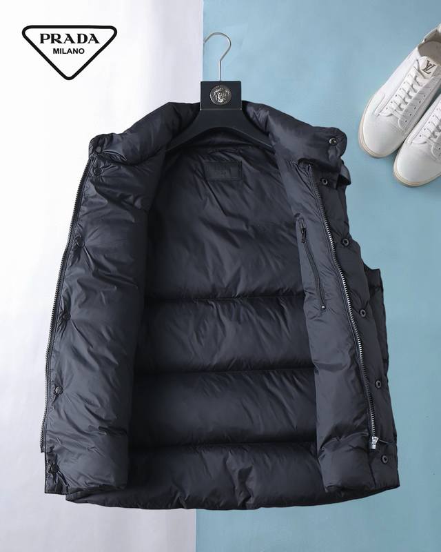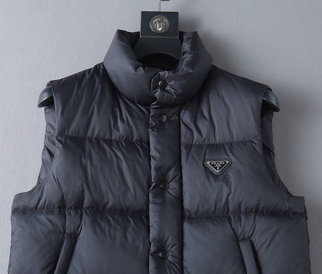 Prada 2025 Autumn/Winter New Down Vest, all 90% down. Featuring the classic logo combination, it makes a strong visual impact at first glance. It boasts superior warmth, is lightweight without being bulky, and has excellent loft recovery after compression, effectively retaining heat! The unique color-blocking design is fresh and vibrant! There are far too many versions circulating in the market. Besides differences in fabric and workmanship, the biggest difference is that the filling is not goose down but feathers or soft down, etc., which is difficult for those unfamiliar with the industry to distinguish. Furthermore, the fabric and workmanship are definitely not on the same level. In short, choose us, and you won't be disappointed. We exclusively source all colors from authentic products. Those who understand the quality of our down jackets can buy with complete confidence. All three labels are complete! Unisex series! Sizes: M-3XL. Maximum weight 200 catties.