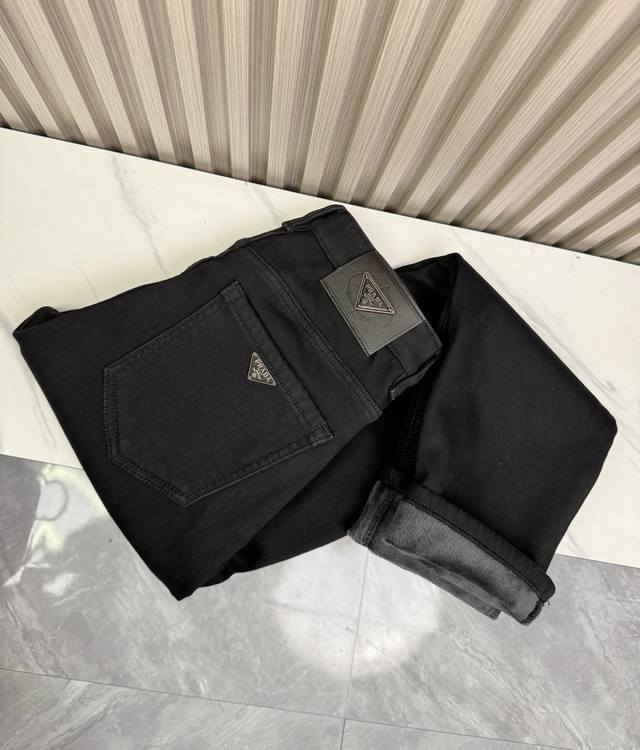 Prada 2025 Fall/Winter Men's Fleece-Lined Jeans New Arrival! Extremely warm, custom-made fabric that's softer and more comfortable than regular denim! Comfortable to the touch, delicate and breathable. All hardware and brand logos are custom-made using top-quality materials. The fabric has excellent elasticity and is incredibly comfortable! Understated design, simple and elegant style. Sizes: 29 40 DDD