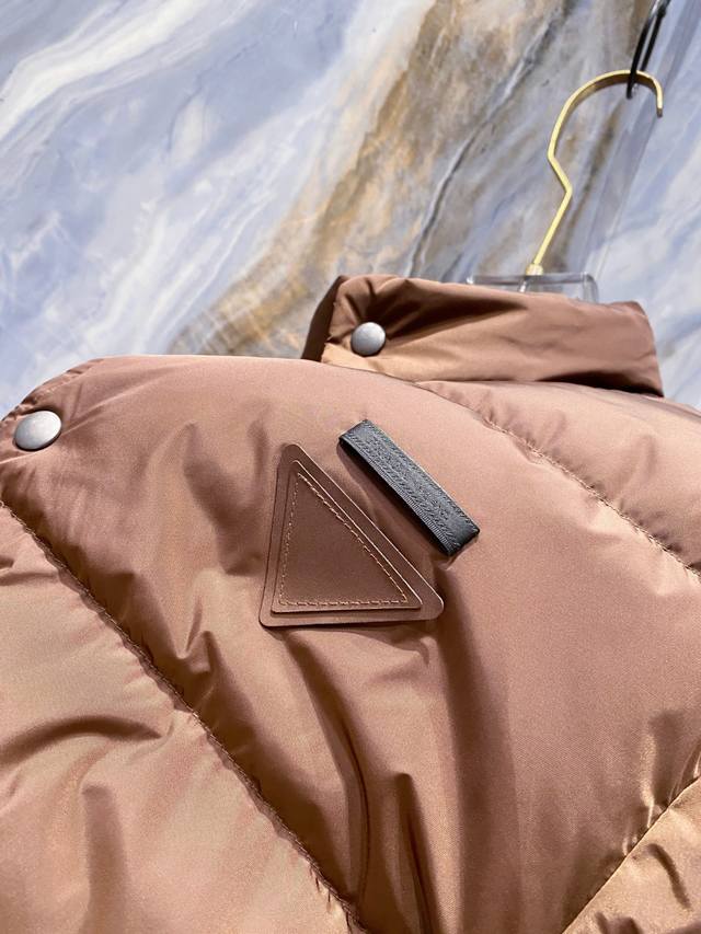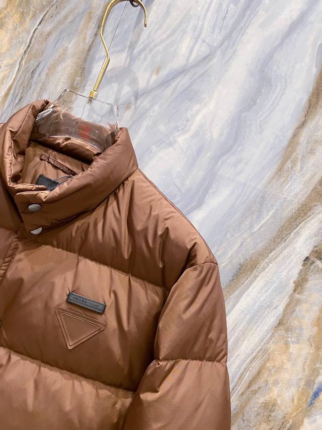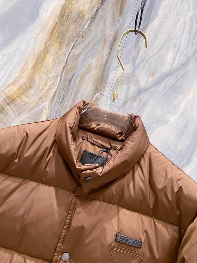 Prada 2025 Fall/Winter New Arrivals, Newest Down Jackets Available Now! All original imports, this year's latest colors, a true 1:1 perfect replica in both fabric and accessories. All accessories are the latest gunmetal finish. Original small triangular leather labels ordered from Hong Kong Daffy Company, all labels are the same color as the fabric. Filled with 95% white duck down, unbeatable quality. Sizes 48-56, buy without hesitation. The highest quality version on the market. Welcome to compare with DDD.