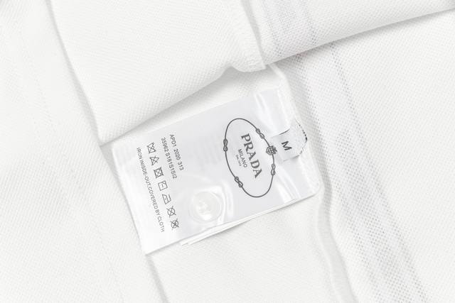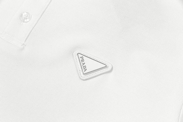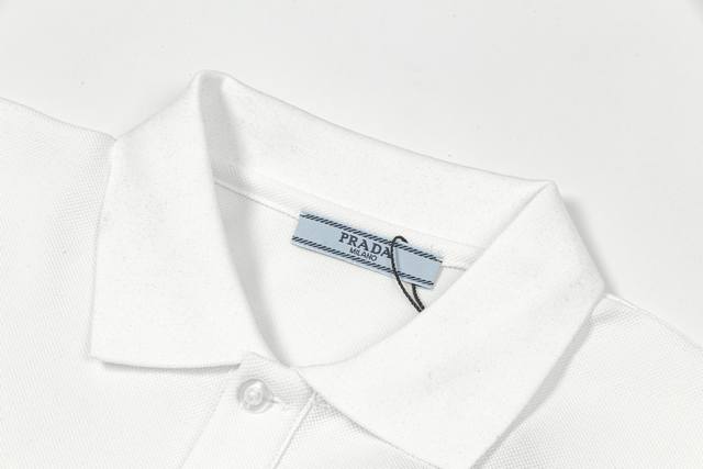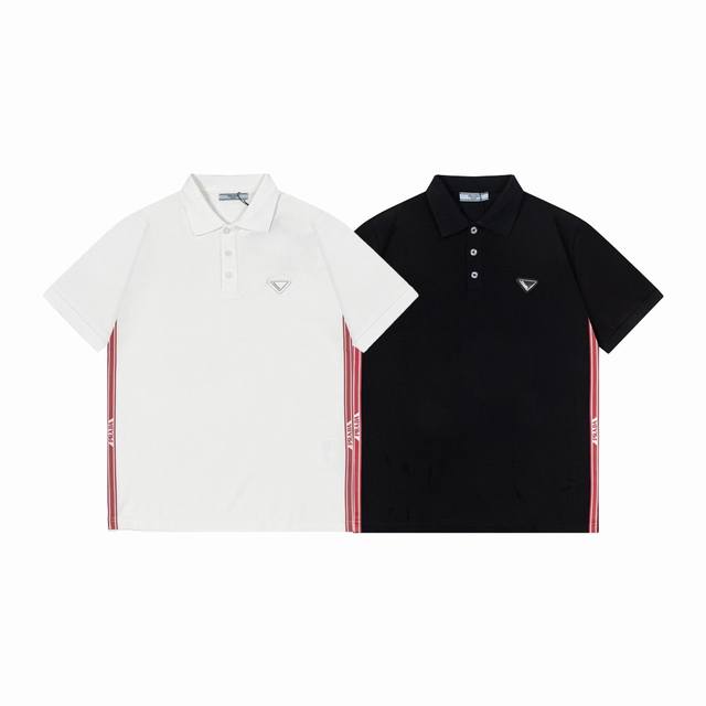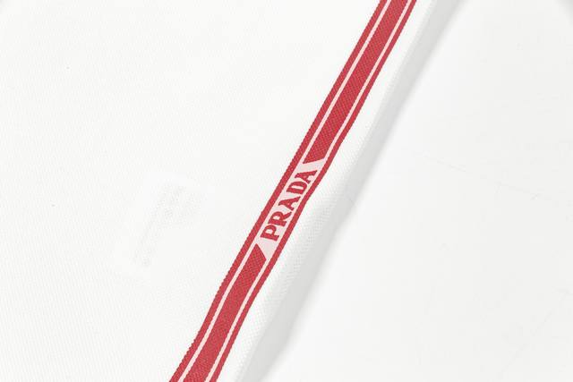 Prada 2025 new side red stripe letter printing custom triangle leather badge logo unisex casual polo shirt
