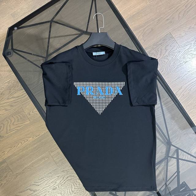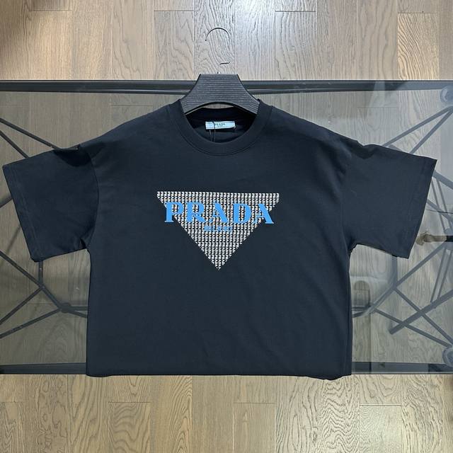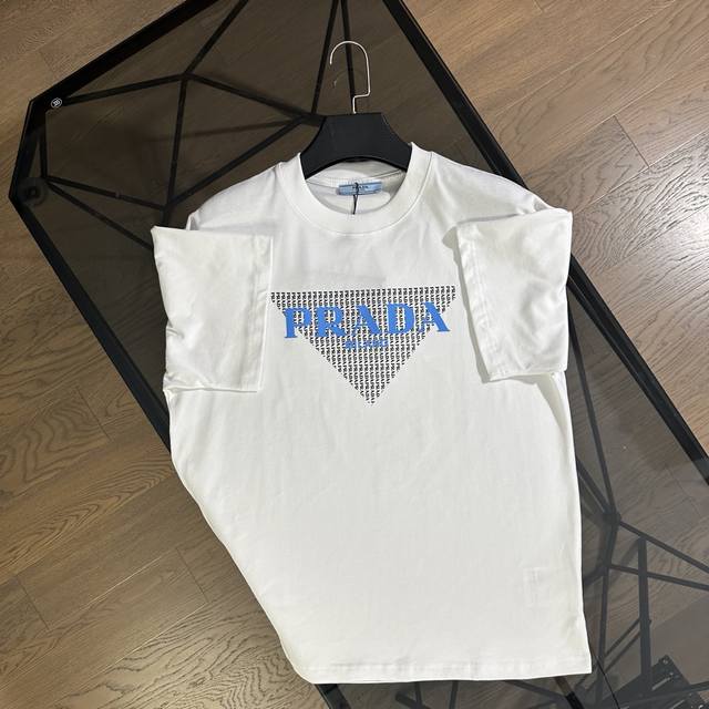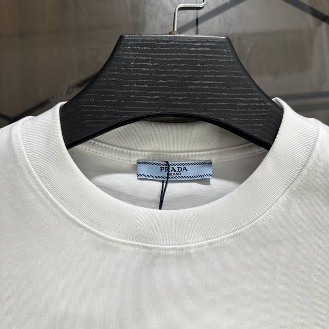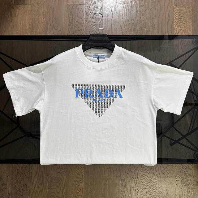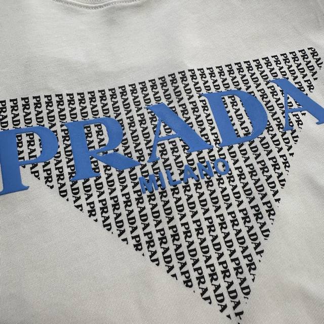 Prada 2025 spring and summer new letter embroidered inverted triangle logo short-sleeved T-shirt