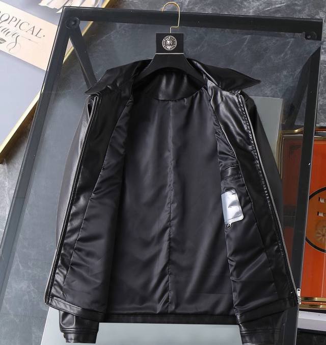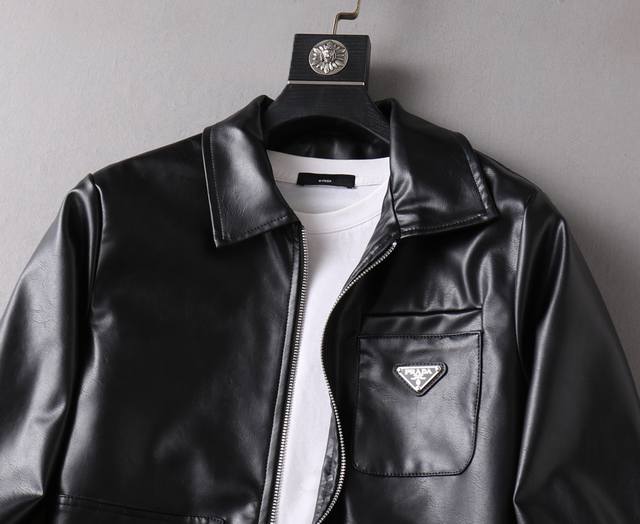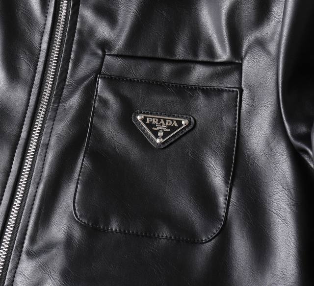 Prada 2025 Spring/Autumn New Leather Jacket, runway new arrival, in perfect condition. Memory fabric for comfort and warmth, all three labels are complete, and the color is rich and alluring. A truly outstanding design that effortlessly elevates your style. The workmanship is extremely meticulous and rigorous, with neat and delicate stitching! A masterpiece by a top designer! Not bulky at all, super stylish! Sizes in stock: M to XXL. Largest size: around 200 lbs. Please provide your height and weight when ordering! DDD