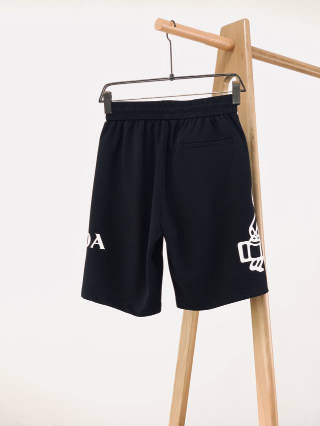 Prada 2025 Spring/Summer New Arrival Men's Shorts. The fabric is king, the cut is winning. The perfectly proportioned leg opening and just the right length, ending slightly above the knee, are neither too long nor too short, creating a clean and stylish look that's versatile and handsome. The overall lines are smooth and streamlined, with the drawstring adjustment buckle being a new design this season, understated yet exuding a strong sense of unity. Made with imported custom fabric, ultra-fine yarn in a high-density weave, it's breathable and absorbent. Features digitally printed logos on both sides and custom-supplied hardware accessories, with a delicate texture and excellent elasticity and resilience. A novel style, fashionable and versatile. Size: M-3XL