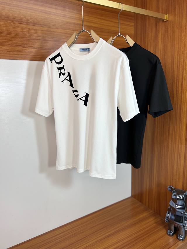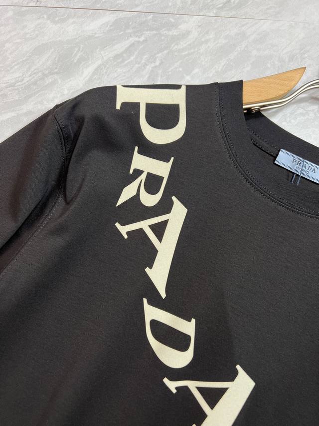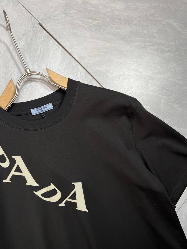 Prada 2025 Spring/Summer new arrivals, three complete labels, mercerized cotton short-sleeved T-shirt. Great product, no need to explain too much. See the details. Counter sizes: M-Xxxl, 175-140, recommended L