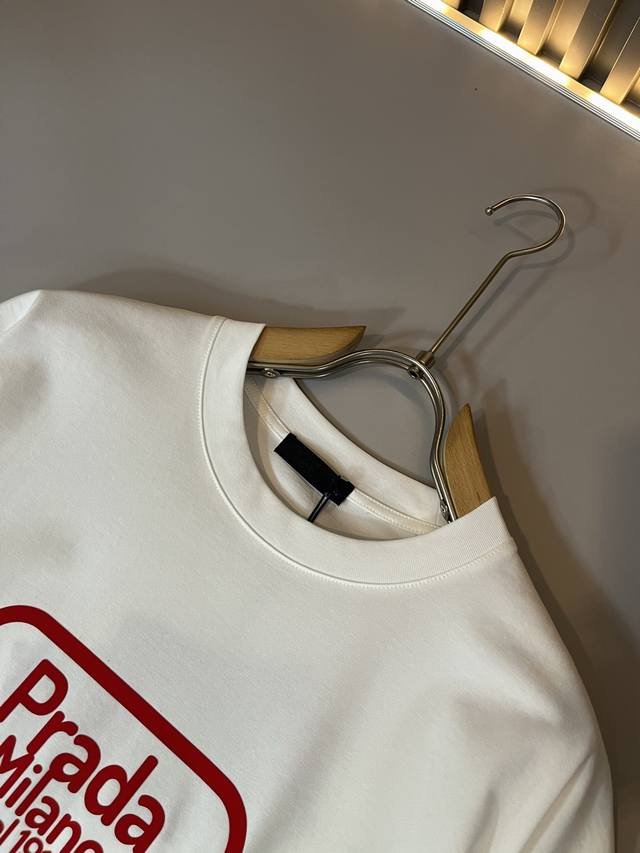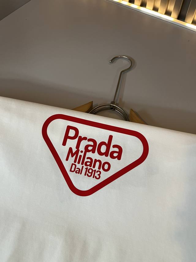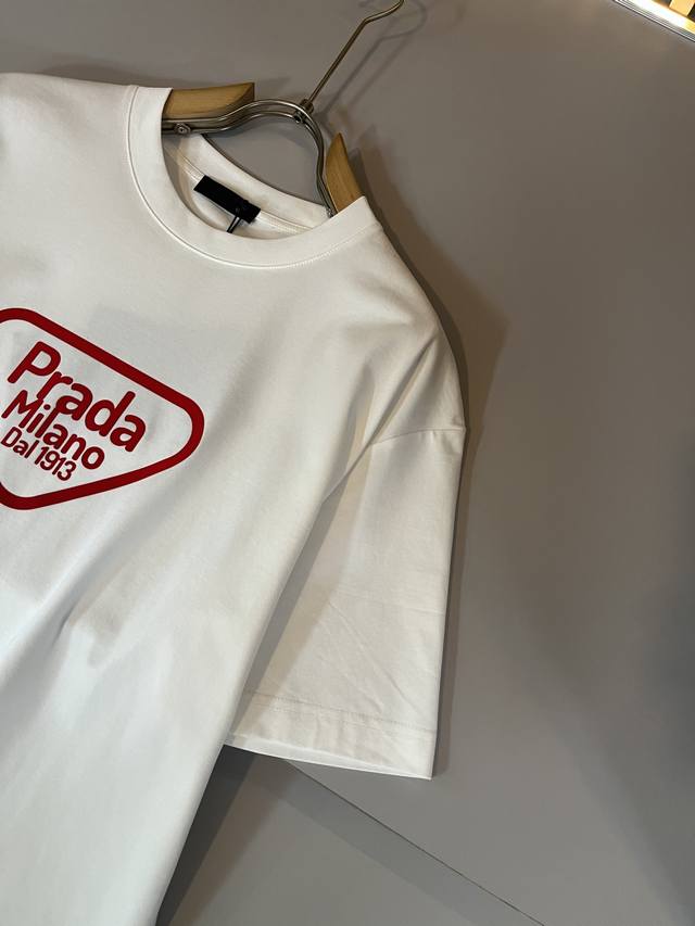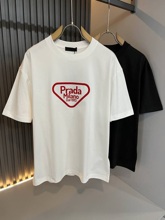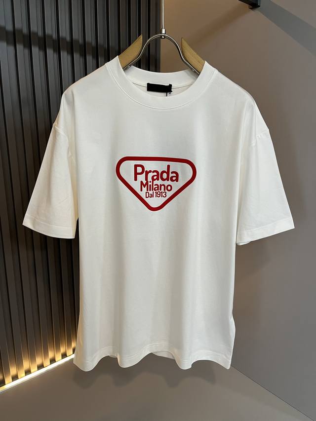Prada 2025 Spring/Summer New Unisex Short-Sleeve T-Shirt, Latest Exclusive Online Release!! ~ Classic yet fashionable and versatile, who wouldn't love it? A classic design presented once again, very timeless, exuding understated luxury and high recognizability! A perfect blend of Prada's traditional brand philosophy and modern advanced technology. Featuring an extremely modern and minimalist design, and a custom-made 100% imported pure cotton fabric! The quality is truly impressive; you can tell the level of craftsmanship just by touching it. The fine details and breathability are top-notch! Sizes: S-XL