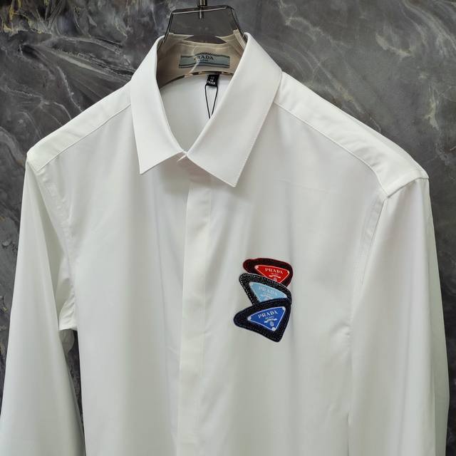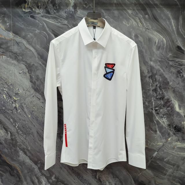 Prada 2025Ss new long-sleeved shirt, high-end version! Custom-made fabrics are breathable and comfortable, with impeccable details and brand element design concepts, reflecting high quality. Delicate and soft touch! Casual cut, great upper body shape! Size: 39-45 M-5Xl Can be worn up to 190 pounds. Delivery the next day