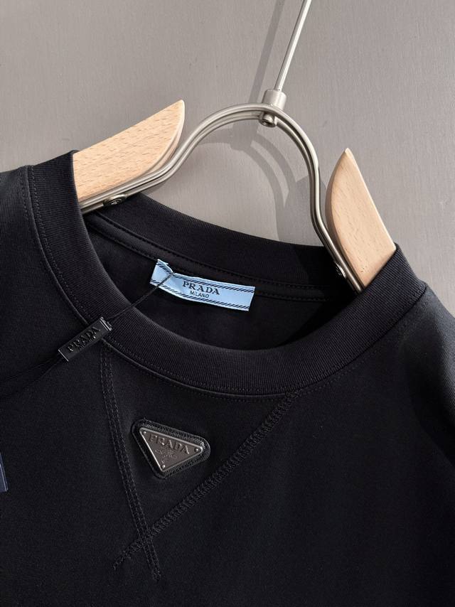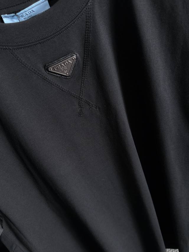 Prada 2026 New Short-Sleeve T-Shirt, a must-have for men and women's daily commuting and couples. Made of high-strength pure cotton double-layer fabric, it feels substantial and has a more luxurious feel than ordinary T-shirts. It's not easily deformed, and the loose fit design exudes elegance. All tags are included. Color: As pictured. Sizes: XS, S, M, L.