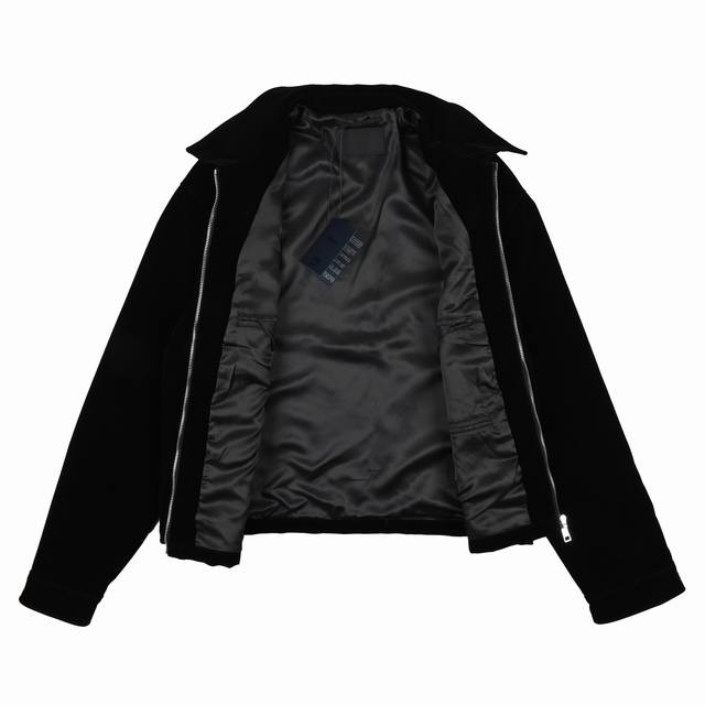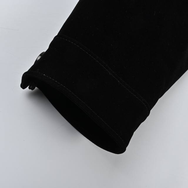 Prada 22-style flocked velvet denim jacket. Made with custom-dyed yarn and 100% cotton denim. First washed and coated with silicone oil to remove excess dye before flocking. The flocking process requires needle replacement every 100 meters due to wear. After flocking, it is lightly fermented, washed, dried, and singed. Features a silk lining, a triangular label on the chest, and a single zipper. Custom sizes available: 20mm, 15mm. Features include lace detailing, genuine horn buttons, and a sand-washed finish. Made with high-quality materials from a large factory, demanding exceptional craftsmanship. Comfortable and natural fit. Excellent workmanship. Unisex style. Sizes available: S, M, L.