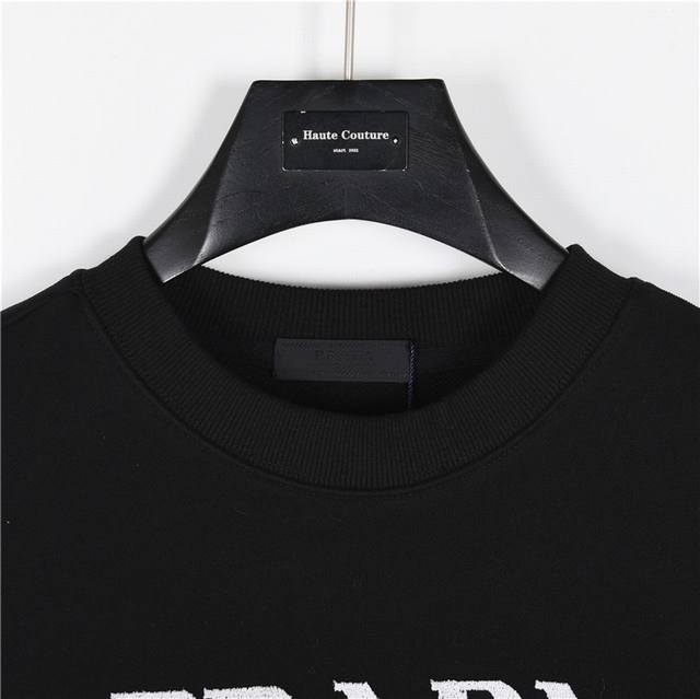 prada 24Fw casual round neck sweatshirt with toothbrush embroidered logo. Custom-made with 400g Bolin terry double-ply fabric. Original Prada trims. Suitable for both men and women.