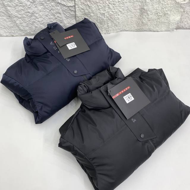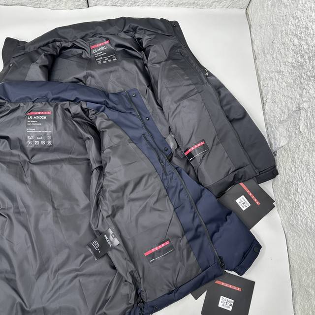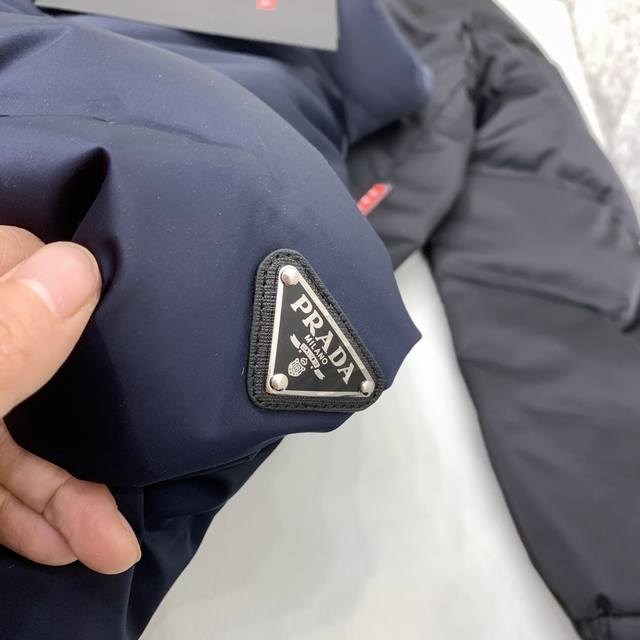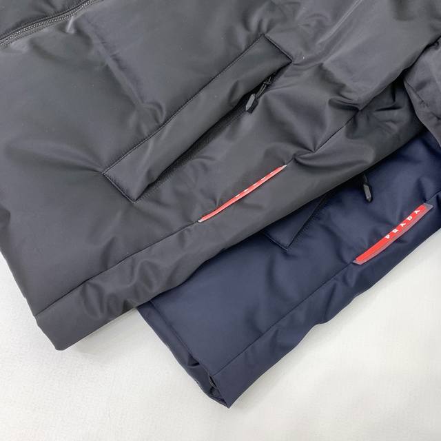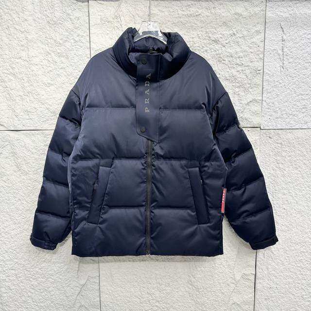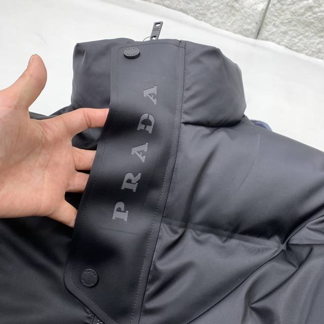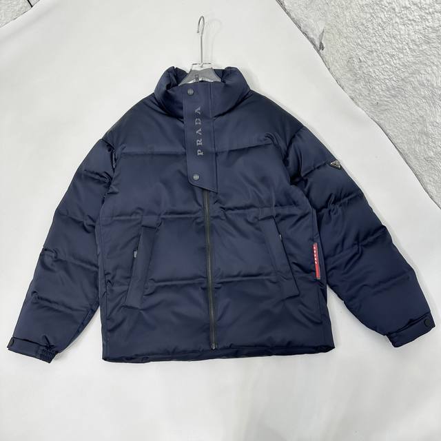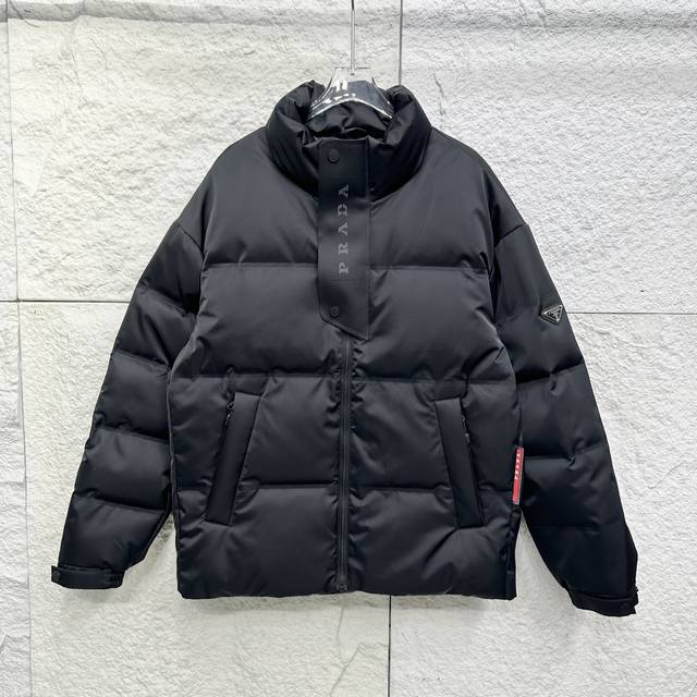 Prada 24Ss Autumn/Winter Newest Glossy Down Jacket! Features the brand's unique triangular metal logo . Made from 100% nylon material sourced from select customers, the fabric boasts superior waterproof and breathable properties, resisting the erosion of outdoor wind and rain. The fabric's touch is unparalleled