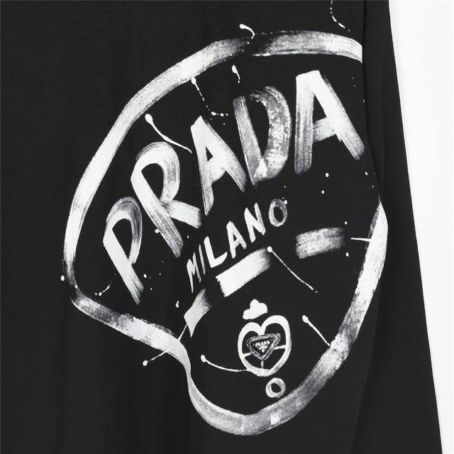 Prada 25Fw Large Logo Ink-Splash Print Long-Sleeved T-shirt