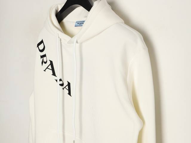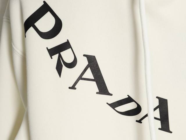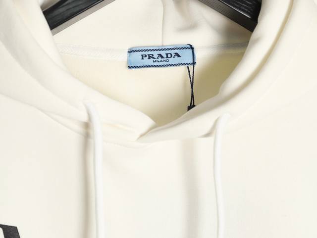 Prada 25Fw Letter Hoodie Ddd 480G High-Grade Combed Cotton Fabric, Original White Thick Hang Tag with Original Label and 3D Foamed Print on the Front and Back, Unisex, Oversized Fit Ddd Sizes: S-XL DDD