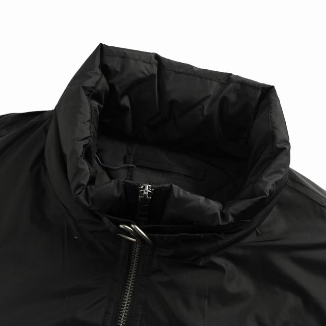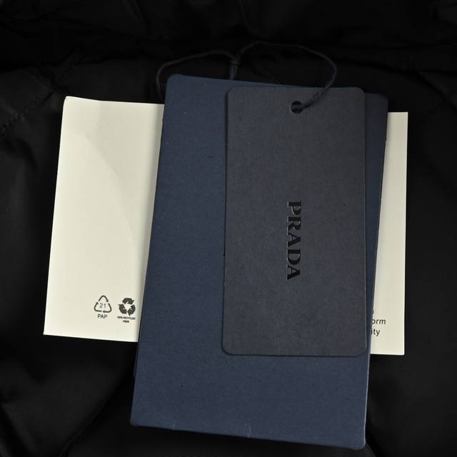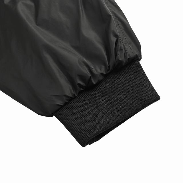 ) This down jacket is made through the brand's "Recycled Nylon" project, transformed via a complex chemical depolymerization-repolymerization process, realizing the concept of sustainable luxury at its source. Unlike common knitted nylon, it is woven with interlaced warp and weft threads, giving the fabric greater structural stability, tear resistance, and windproof density. This weaving method requires precise calculations and high-precision looms to ensure a uniform texture and premium feel, while providing a more solid foundation for subsequent downproofing. The shape, weight, luster, and feel of the zipper teeth, pull, and triangle logo are unique to this mold and cannot be replaced on the market. The mold development involves complex industrial design to ensure an incredibly smooth zipper operation and a seamless fit between the triangle logo and the pull. The classic enamel triangle logo also requires individual mold casting and undergoes multiple hand-polishing, enamel filling, and electroplating processes, ultimately becoming a miniature metal work of art. The interior is filled with 90% white duck down, its complexity stemming from the stringent control over purity and quality. "90% white duck down" means the filling contains up to 80% down clusters, with the remaining 10% being small feathers. Down clusters are the tufted structure within down feathers, responsible for trapping air and providing excellent warmth; their content is the gold standard for measuring down quality. High-grade white duck down undergoes rigorous sorting, washing, disinfection, and drying processes to ensure it is lightweight, odorless, highly lofty, and rich in oils, thus providing superior warmth while significantly reducing the overall weight of the garment. The ribbing at the collar, cuffs, and hem is not ordinary elastic fabric, but rather "custom flat knit ribbing." This process, woven on advanced knitting machines using a specific program, is complex due to its precise structure. Flat knit ribbing has a tighter structure and stronger elastic recovery, effectively preventing cold air from penetrating while avoiding loosening due to prolonged use. Its surface texture is smooth and uniform, requiring extremely high stitching precision at the seams with the woven nylon body to achieve a seamless transition. This ensures both a comfortable, close-fitting feel and a clean, crisp silhouette. Precise diamond-patterned stitching evenly divides and secures the inner lining and down filling into numerous independent spaces. This effectively prevents the down from shifting and piling up during use, ensuring even distribution of warmth. Unisex