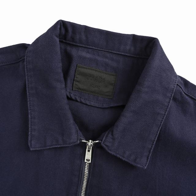 Custom indigo denim Triangle logo infrared positioning, accurate positioning, more durable Washed vintage look Use a special solution to remove stains and slight fading Use strong washing to fade the color for a more uniform color Complex workmanship and high wear