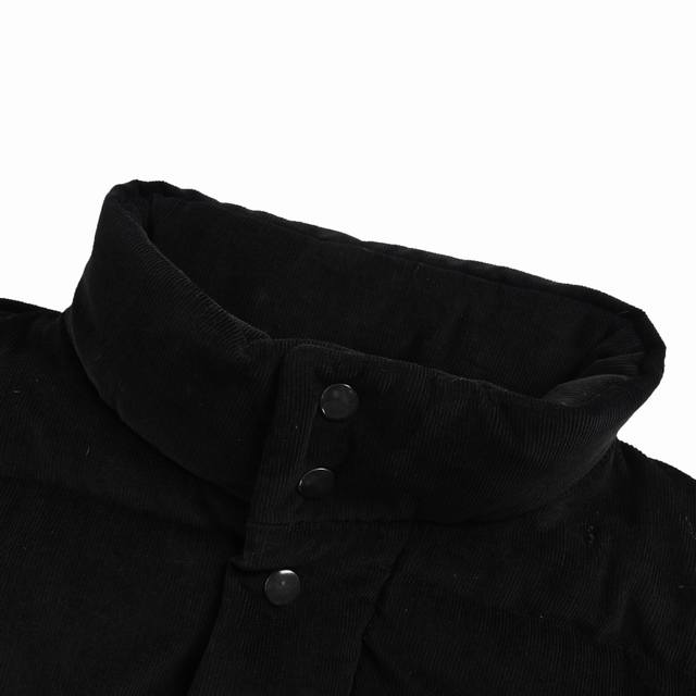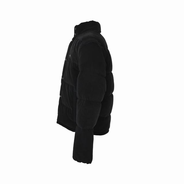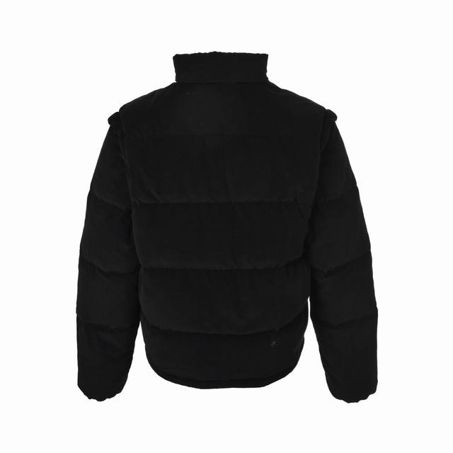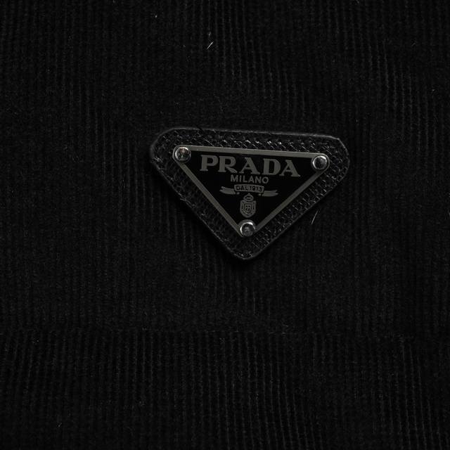 Prada 25Fw Triangle Logo Detachable Corduroy Stand Collar Down Jacket DDD Made with custom-made corduroy fabric, filled with 90% white duck down according to the new national standard, providing ample warmth and a cloud-like feel. The jet black base is paired with the classic enamel triangle logo, the stand collar fits snugly around the neck, and the hidden, retractable hood and detachable sleeves allow for easy vest transformation, offering versatile styling options. Features include computer-precise down filling, infrared positioning logo, fully custom-made 1:1 accessories, and a relaxed fit suitable for everyday wear, balancing fashion and practicality. DDD Size: S-XL DDD