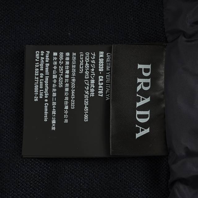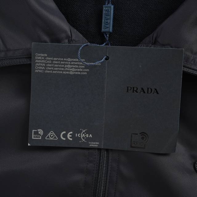 Prada 25Fw Triangle Logo Nylon Knitted Patchwork Jacket Ddd Custom twill glossy nylon coated material patchwork custom woven mercerized wool blend knitted material soft, delicate, comfortable and skin-friendly. Utilizing imported special-purpose infrared positioning machines, seamless patchwork is meticulously crafted, connecting the knitted pieces together through specific stitching, making the patchwork virtually invisible. Hand-stitched patchwork pockets: Each pocket is hand-stitched by artisans, precisely controlling the size and height of the pockets to ensure the left and right pockets are the same size and height. Loose fit Ddd #All knitted and sweater garments are not recommended for machine washing or high-temperature tumble drying! Ddd Size: 48-54 DDD