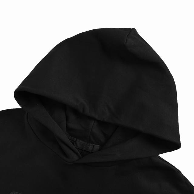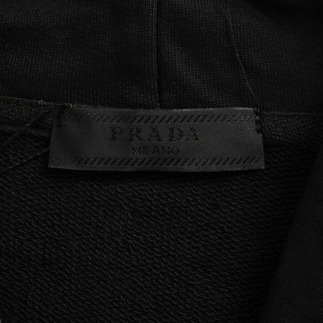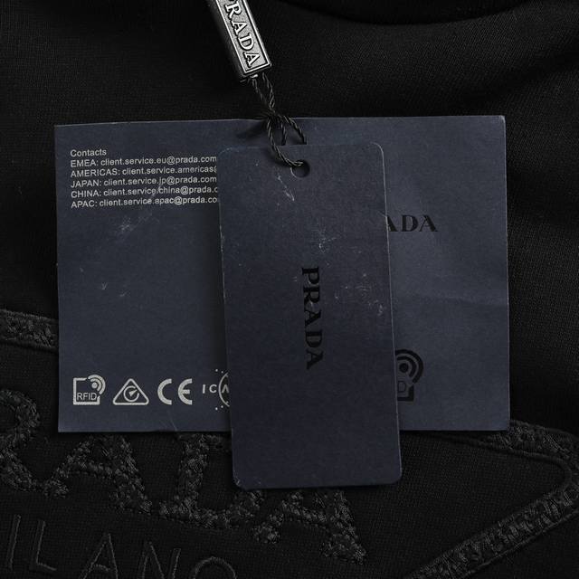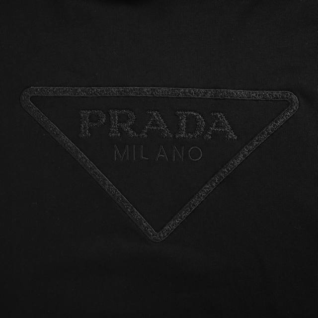 Prada 25Fw Woven Letter Embroidered Triangle Logo Hooded Sweatshirt. Made with custom-dyed terry cotton sweatshirt fabric, double-strand double yarn, comfortable to the touch, and crafted with imported knitting needles and combed cotton. Moderate thickness, with a good drape and silhouette, it's incredibly comfortable to wear! Highly forgiving for slightly chubby figures, making you look five pounds lighter! The front features artistically arranged English letters with imported Tajima high-density heavy-duty embroidery, creating a three-dimensional and full look. The body incorporates thousands of stitches of embroidery, greatly enhancing the garment's fun and unique visual effect. The hem is loose with a double-layered fabric for a neat and refined finish. Color: Black. Size: S -XL.