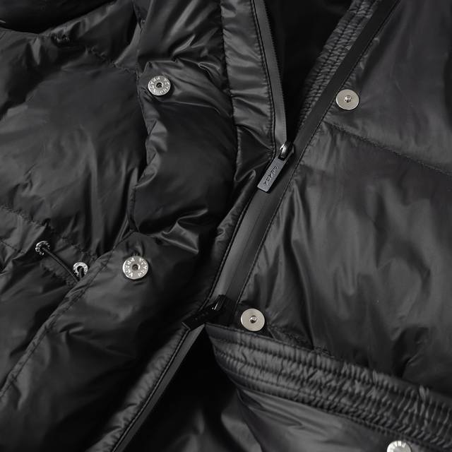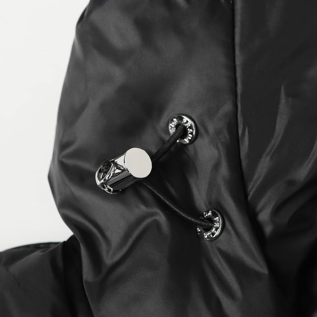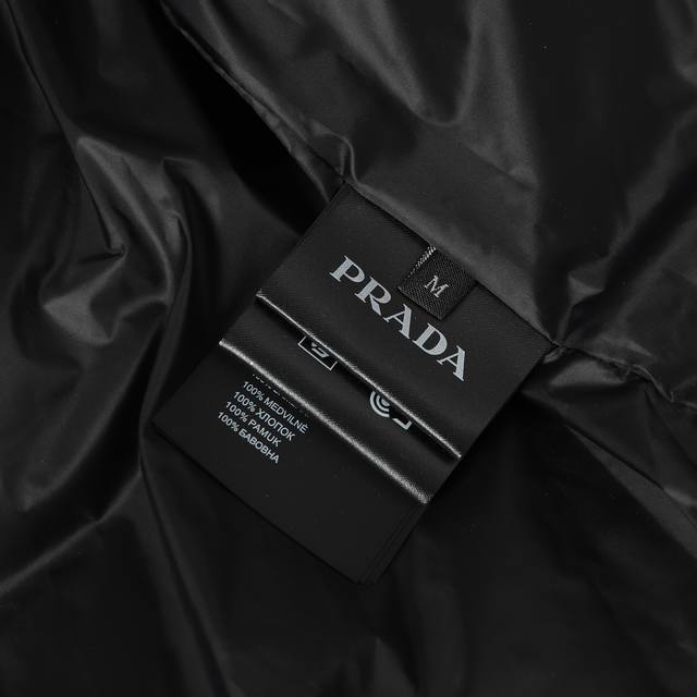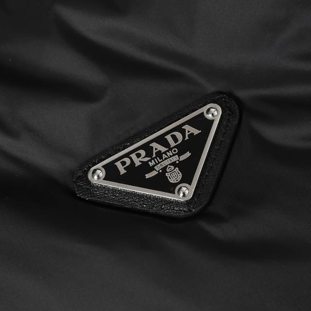 Prada 25Ss New Drawstring Waist Hooded Puffer Jacket. Features a classic inverted triangle leather tag embellishment, a lightweight and full silhouette, and is a must-have streetwear layering piece for autumn and winter. Super warm and suitable for both casual and work wear. High-end quality. Sizes: S, M, L.
