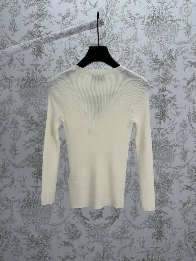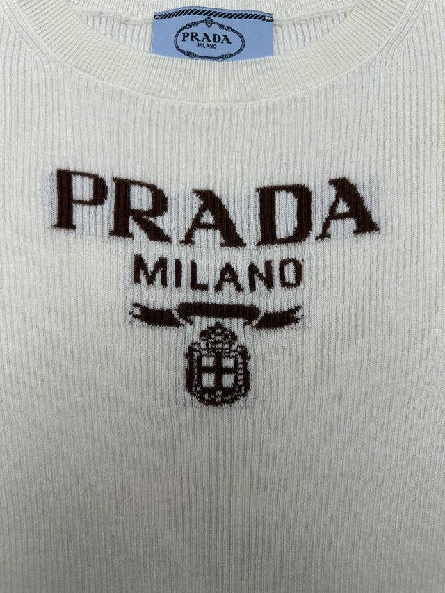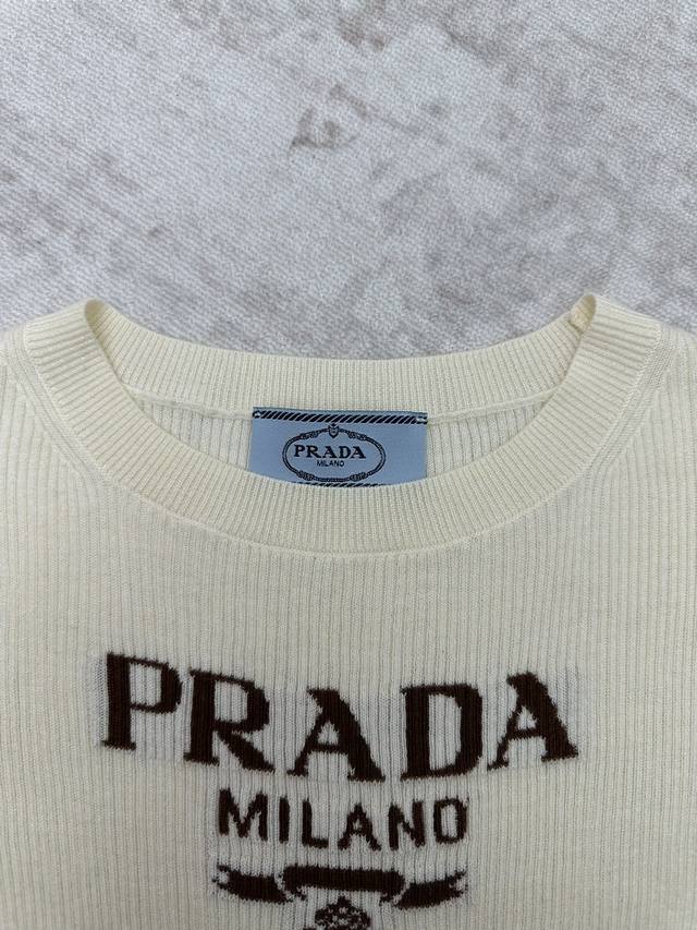 Prada 25Ss New Printed Plain Knit Top. This plain knit top features long sleeves and a ribbed knit crew neck. A contrasting printed logo creates an eye-catching design, while the iconic woven triangle logo adds a touch of simple sophistication. Sizes: S, M, L, DDD