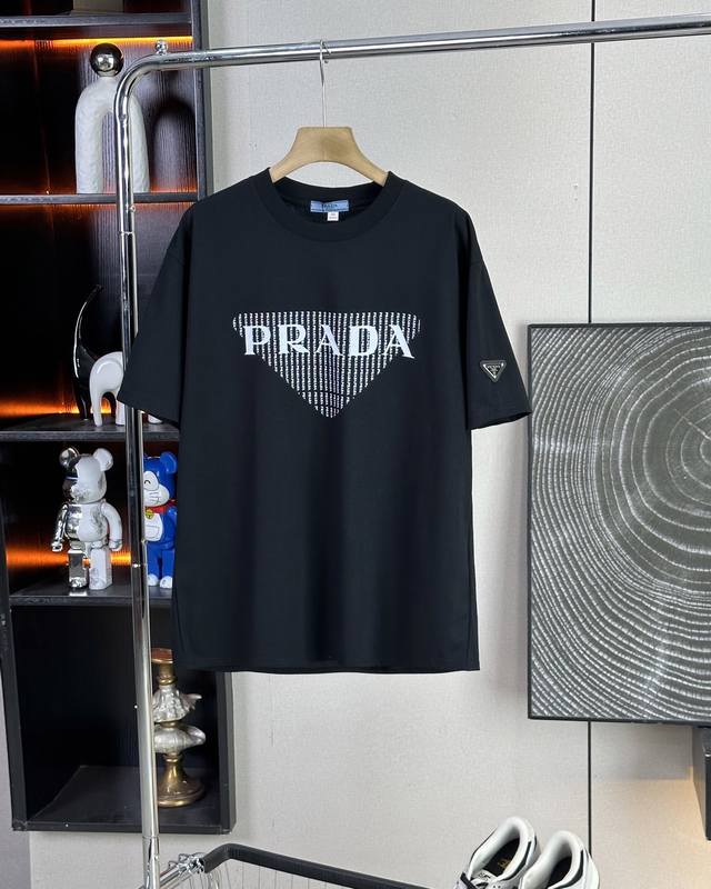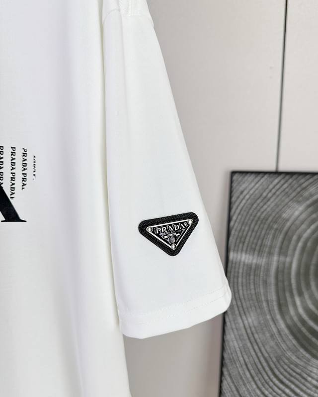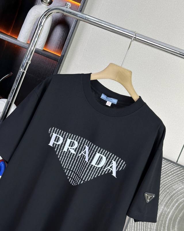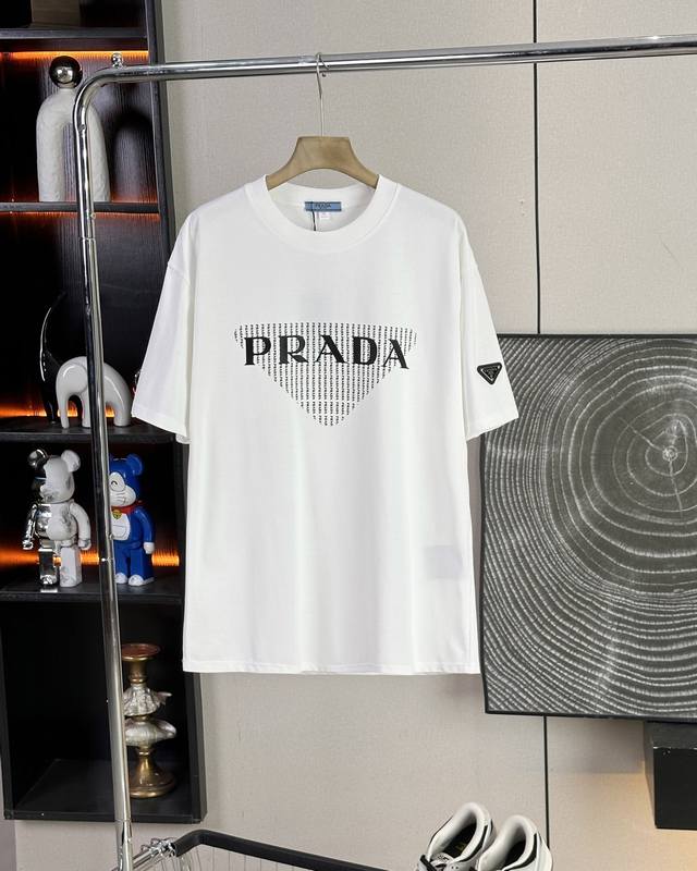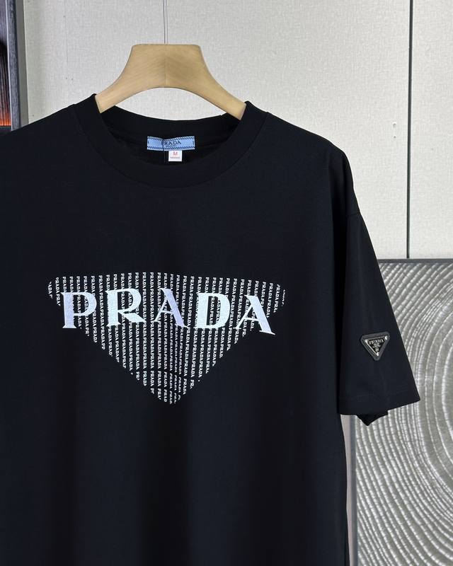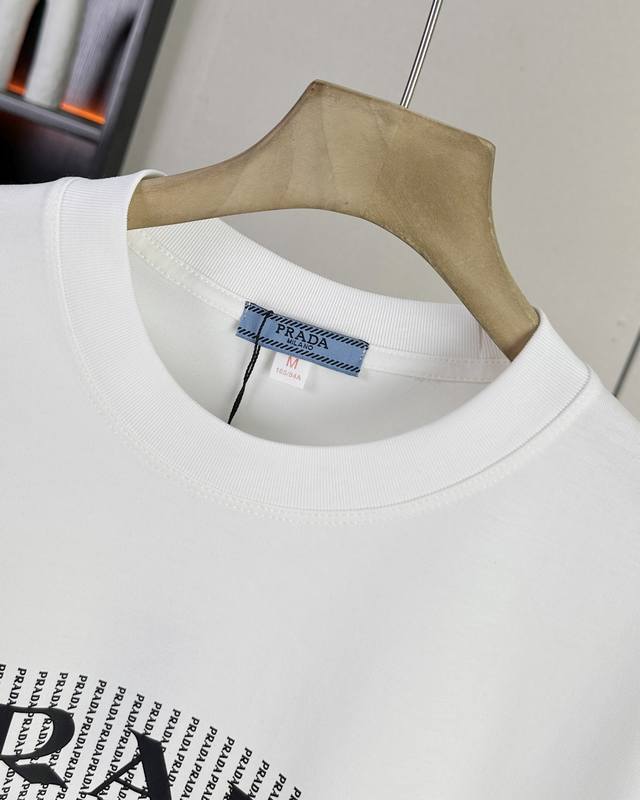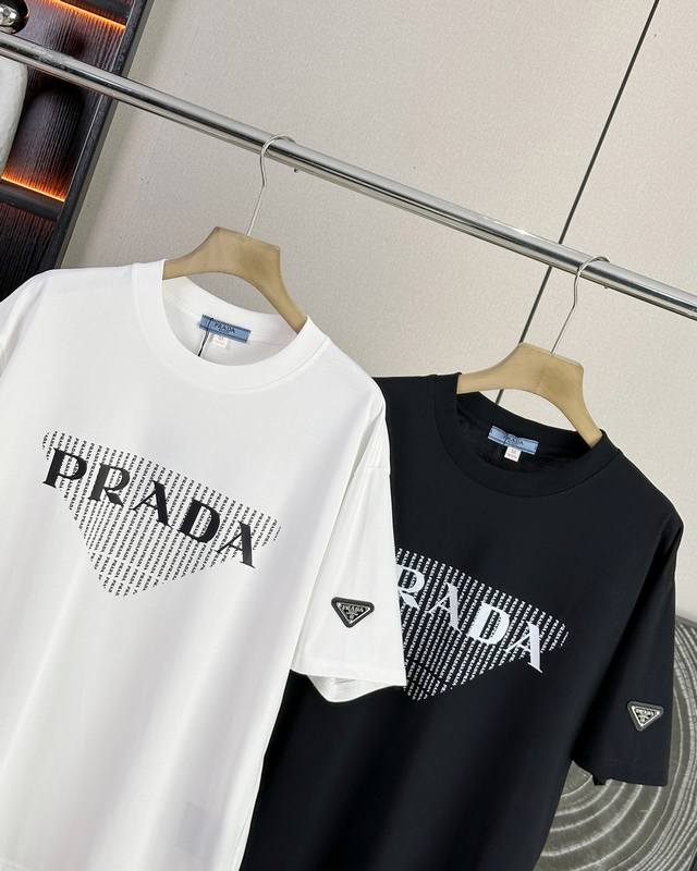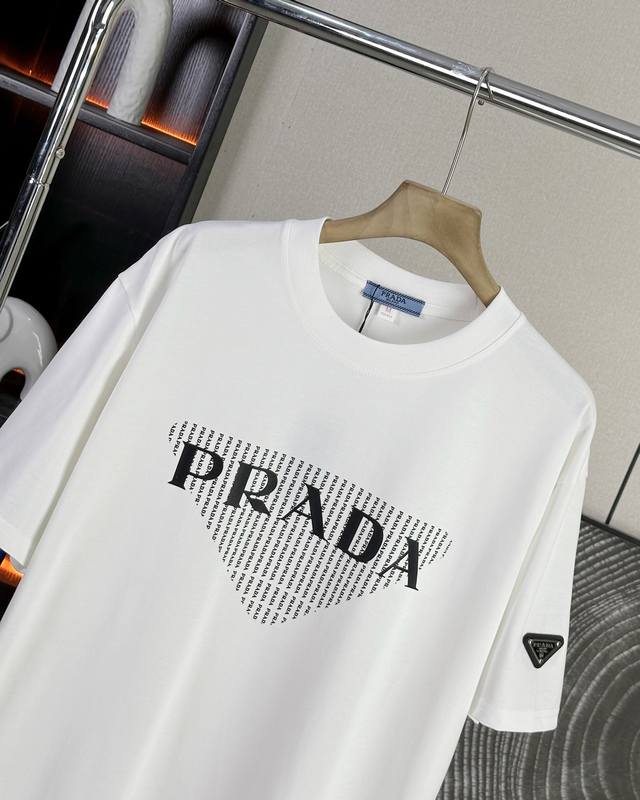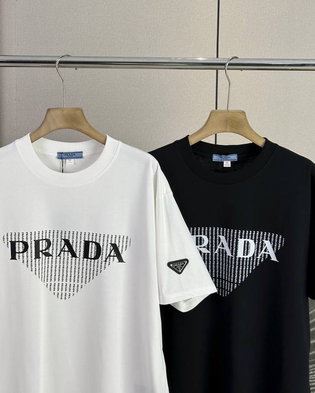 Prada 25Ss new summer model short-sleeved couple's style with letter Logo on the chest, a super classic versatile T-shirt, the same style for men and women couples can match, the owner strongly recommends