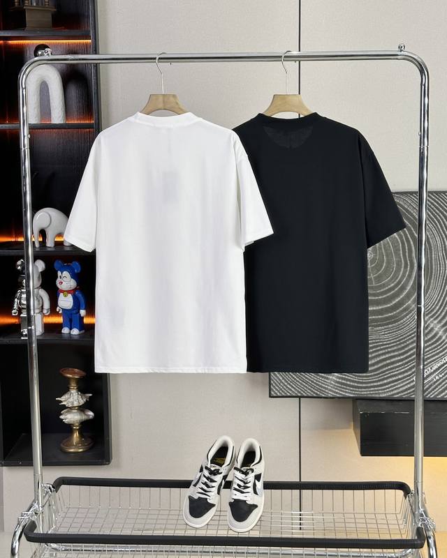 . Made of pure cotton 280G double yarn fabric, it feels delicate, soft, comfortable and breathable. The classic simple letter Logo on the chest is embellished with a metal triangle logo on the sleeve arm. It is novel and unique and will not collide with other clothes. It is classic and versatile and full of fashion sense. It is printed on imported machines with a clear sense of bandage. The whole piece is made of three-needle and five-thread technology, neckline-shoulder seam-sleeve seam-double-line pressure, Oversize version, exquisite and perfect workmanship, a must-have versatile luxury item for summer
