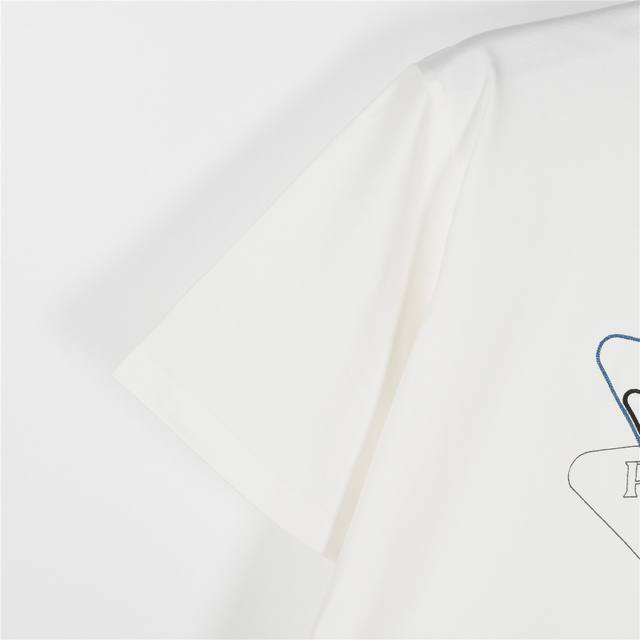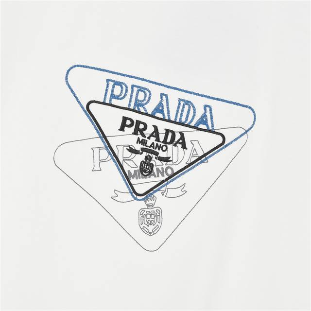 Prada 25Ss overlapping triangle logo contrasting embroidery short-sleeved T-shir