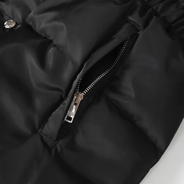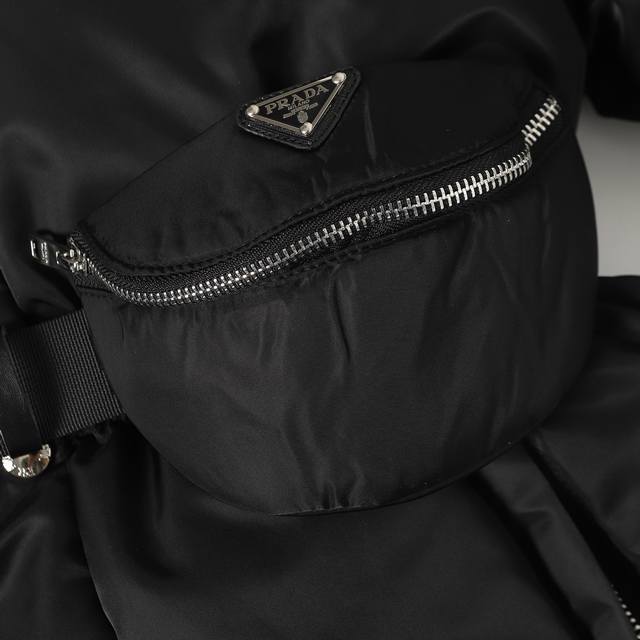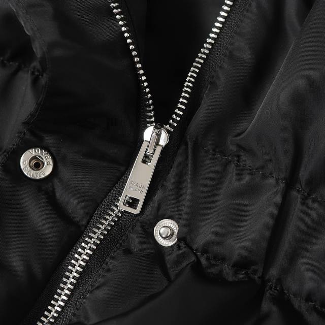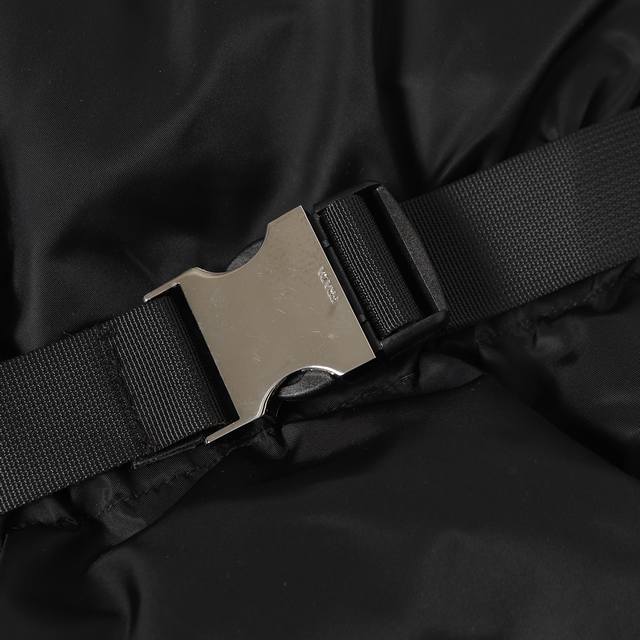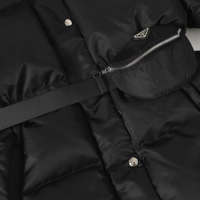 Prada Ant Waist Hooded Down Jacket (Ddd) - Redefining Winter Style: This high-end recycled nylon long down jacket unlocks multiple styling options. Made with recycled nylon, it embodies sustainable fashion principles while offering windproof and waterproof capabilities to handle unpredictable weather. Features include a hooded collar and side-fastening nylon webbing details for enhanced functionality; elastic cuffs and a drawstring hem lock in warmth and prevent wind drafts, improving overall fit. Filled with premium duck down, it's lightweight, fluffy, and incredibly warm, fearlessly conquering the cold. The 3D tailored ant waist design, paired with a detachable belt and a matching functional bag, effortlessly accentuates an elegant silhouette, allowing for easy switching between casual and sophisticated styles. Ddd Accessories: Custom triangular logo, custom drawstring, elastic buckle, custom zipper pull, etc. Sizes: S, M, L, XL