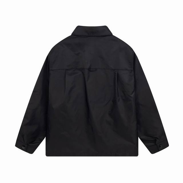 Prada classic custom-made triangle logo nylon long-sleeved shirt jacket. A classic yet stylish unisex design, both dark and cool. The classic inverted triangle logo on the chest pocket adds a touch of functionality. A minimalist shirt that's particularly timeless, versatile, fashionable, and unconventional. Clean, sophisticated, cool, and high-end look. Sizes: Xs, S, M, L.