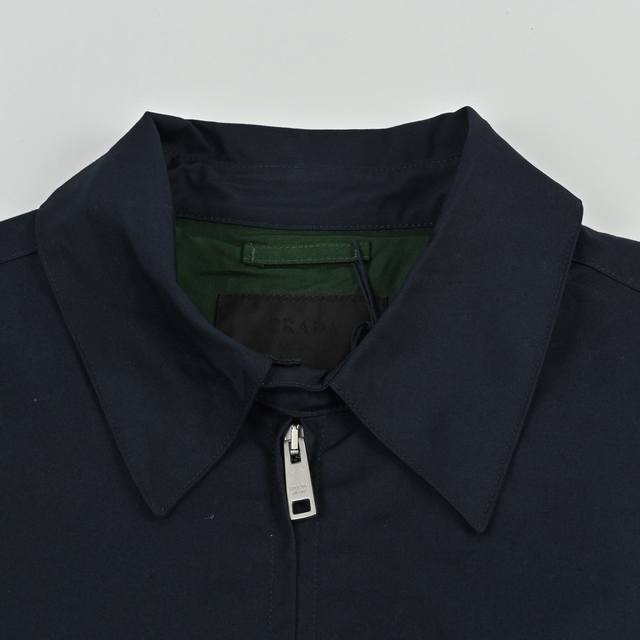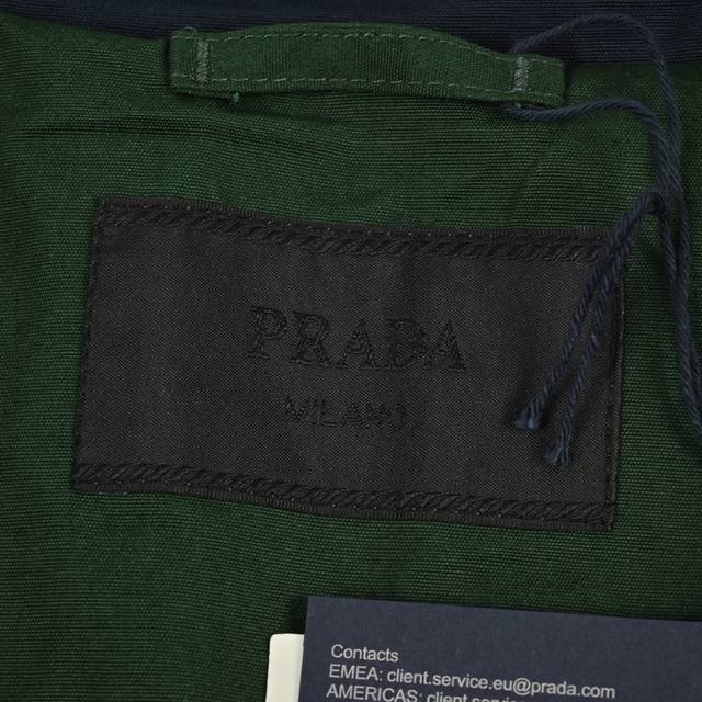Prada color-blocked jacket. A double-sided, two-tone executive jacket; high-quality style goes for Prada. Retro yet refreshing colors: navy blue with dark green, khaki with light blue, and smoky gray with light pink. Features a simple small logo design on the chest. Sizes: 46-52.