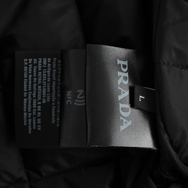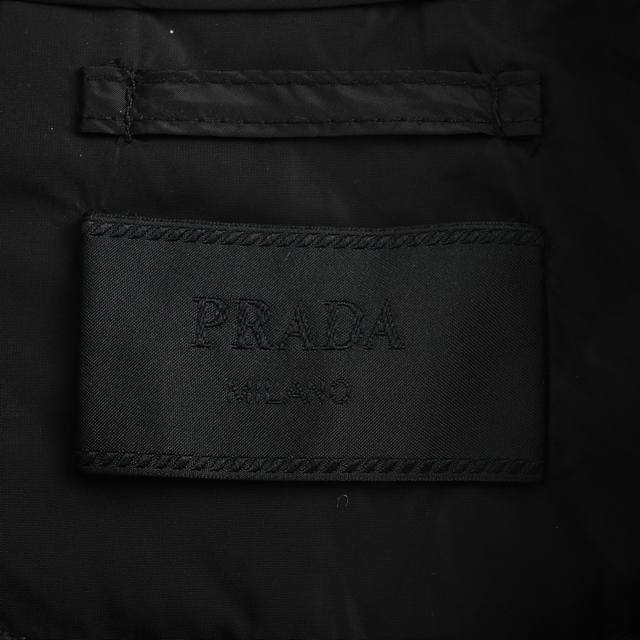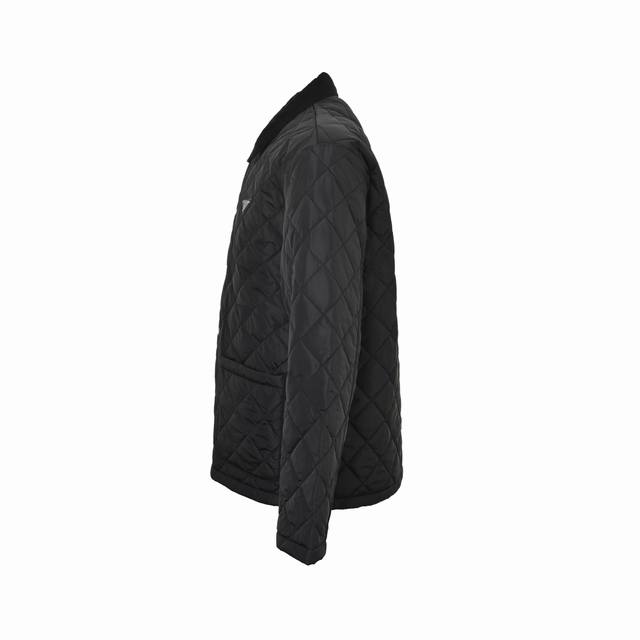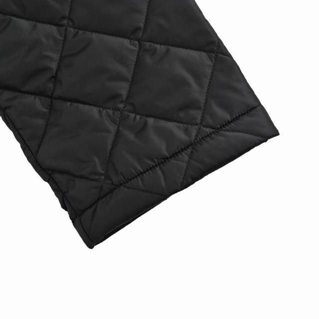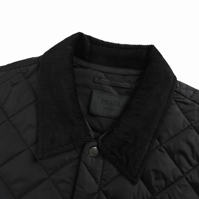 Prada corduroy collar triangular logo turn-down collar cotton coat. Original version purchased for 2000. Both the outer and inner fabrics are 72% polyester and 28% cotton, with 600-drop cotton lining. The placket and pockets are perfectly aligned, showcasing craftsmanship. The collar is trimmed with corduroy. Only 3 coats can be made per person per day, due to the meticulous workmanship. The diamond-quilted cotton coat is made of recycled nylon, offering warmth and a high-quality feel. It features a detachable vest design for flexible styling, and the neckline details add a sense of layering. Simple and practical, it's suitable for both work and leisure. It looks stylish layered over long-sleeved shirts or sweatshirts in autumn and winter, exuding a modern feel. Size: S-XL