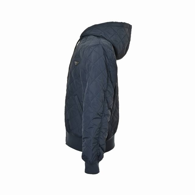Prada Diamond Pattern Lightweight Hooded Coat DDD This style is made of recycled nylon, a fabric derived from ocean-reclaimed fishing nets and waste plastics, refined and recycled. It is extremely lightweight yet boasts excellent abrasion and tear resistance, making it resistant to snagging or tearing. The surface undergoes a special treatment, providing good windproof and some water-repellent properties, handling light rain and accidental splashes during city commutes. The high-density nylon fabric has a smooth feel and just the right amount of sheen, avoiding the plasticky feel of cheap nylon. The filling uses a feather blend; to achieve a "lightweight" yet warm effect, the filling is a mixture of white duck down and feathers. 90% down, 10% feathers. The high proportion of down traps more air, providing better warmth; a small amount of feathers and quills provide support, but too much will affect warmth and comfort. Unisex DDD Size: 36 38 40 42 DDD