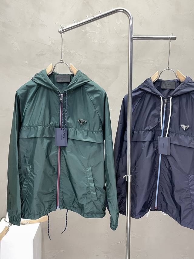Prada Exclusive: Latest Fashion Spring/Summer Recycled Nylon Hooded Jacket. A classic design with a stunning look, this jacket boasts impeccable quality control. A high-end masterpiece you can't afford to miss! Even the detailed images showcase its powerful presence. Its excellent heat retention ensures you won't feel cold at all! Combining style and functionality, this jacket exudes luxury and sophistication! Sizes: 46-52