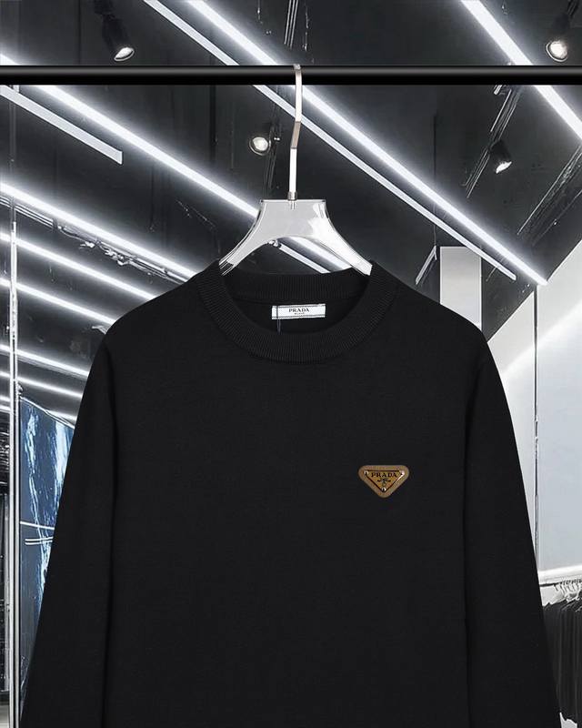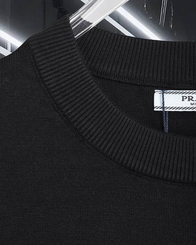 Prada exquisite logo crew neck sweater DDD Premium wool blend sweater for men and women, high-end custom-made exquisite series. Belongs to the brand's high-end main line, patented top-grade yarn blend, reinterpreting conventional styles with innovation. The fabric configuration is also revolutionary, with remarkable details. DDD The most anticipated sweater for autumn and winter, full of high-end feel. Designated by the brand's Zhejiang processing factory, leaked, extremely high cost performance. Excellent quality Merry wool yarn, super soft, delicate, soft, non-pilling, and non-deforming. DDD Available in major stores simultaneously. A must-have item every year. Seemingly simple, but with extremely complex craftsmanship. Suitable for all body types, extremely skin-friendly and comfortable. Can be worn alone, under a coat, or as an outer layer. All three tags are complete. DDD Colors: Black, White DDD Sizes: M, L, XL, 2XL, 3XL DDD