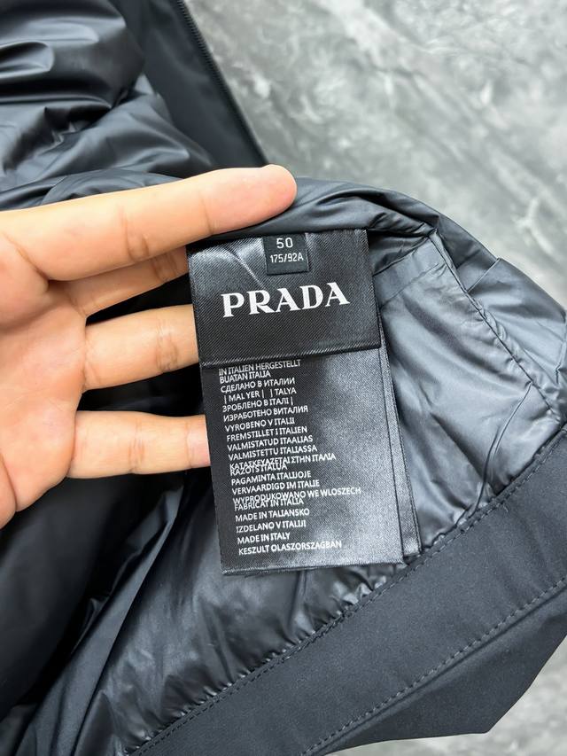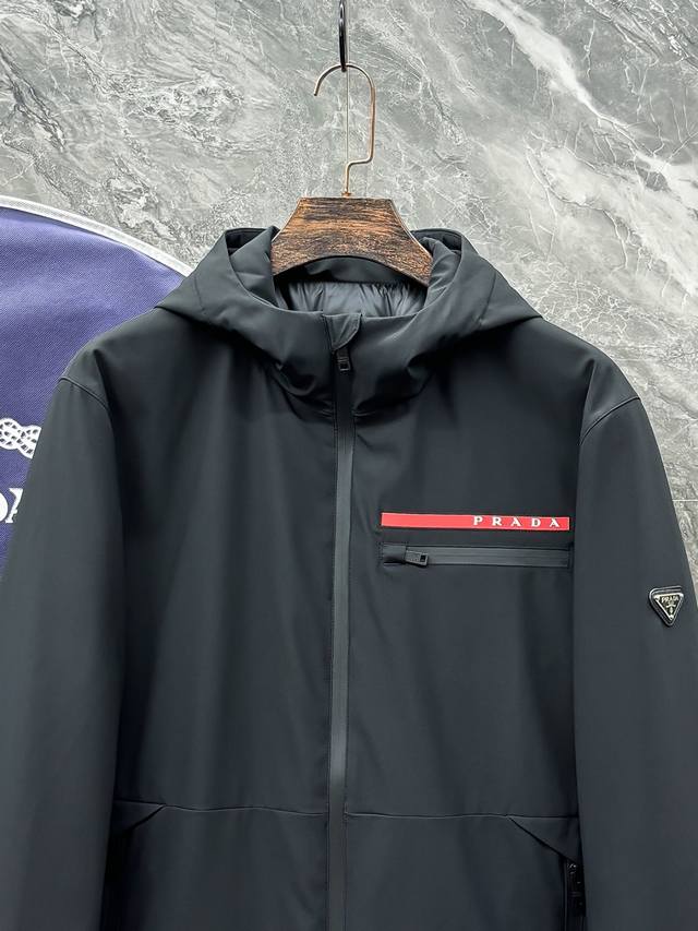 Prada Fall/Winter 2025 Red Stripe Hooded Mid-Length Jacket (DDD). Made with 100g-90% white duck down, this lightweight and stylish jacket offers a flattering silhouette without feeling bulky. A quintessential Italian fashion piece, this premium item from a trading company showcases meticulous attention to fabric selection and craftsmanship, perfectly embodying the brand's century-old aesthetic. Understated yet luxurious, elegant and sophisticated, every detail reflects the brand's high-end style. It perfectly embodies Italian minimalism, clean lines, and outdoor functionality, offering a versatile and stylish look. A true gem of a functional piece, this jacket combines fashion and design, creating a unique and stylish look. The modified aviator design is classic yet fashionable, retro, youthful, and incredibly chic! Made with imported Italian fabric, the texture is as delicate as a baby's skin, with excellent drape and a sophisticated, elegant, and fashionable feel. The color scheme is sophisticated yet versatile, and the clean, tailored cut instantly elevates your look, giving you a sharp and polished appearance. It's a stylish jacket that flatters all body types, making it perfect for both business commutes and casual outdoor activities. A highly practical and versatile piece of gear! Color: Black Sizes : ML XL 2XL 3XL