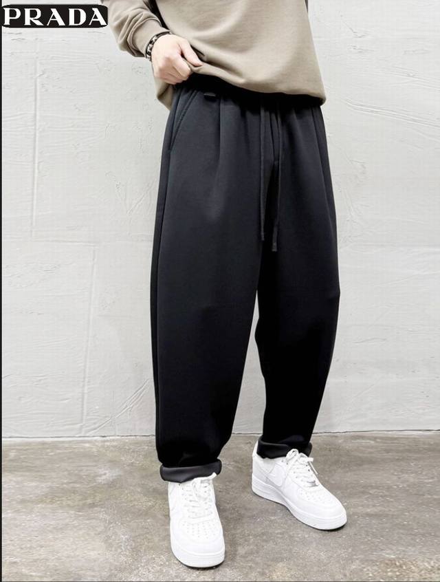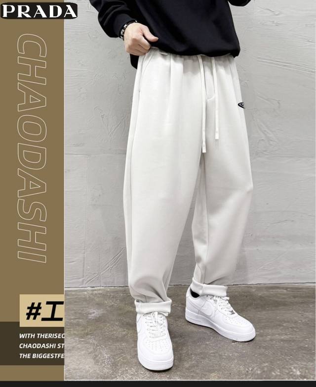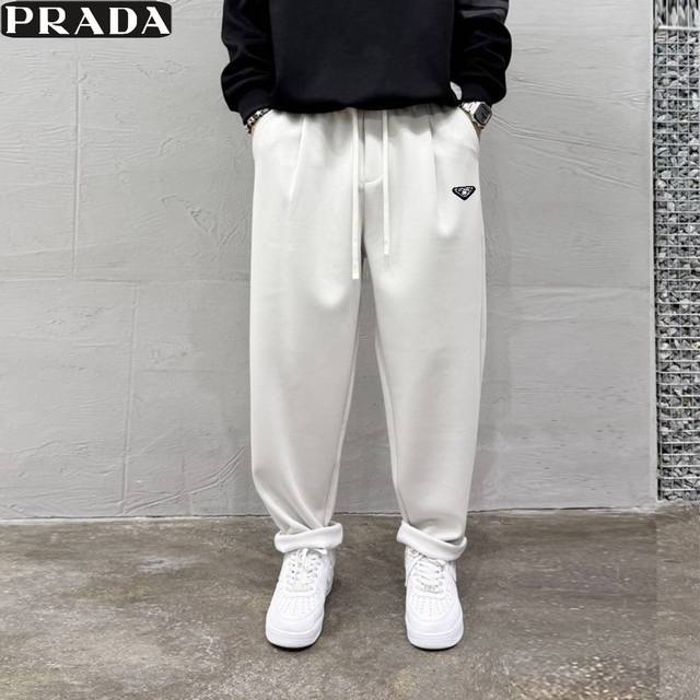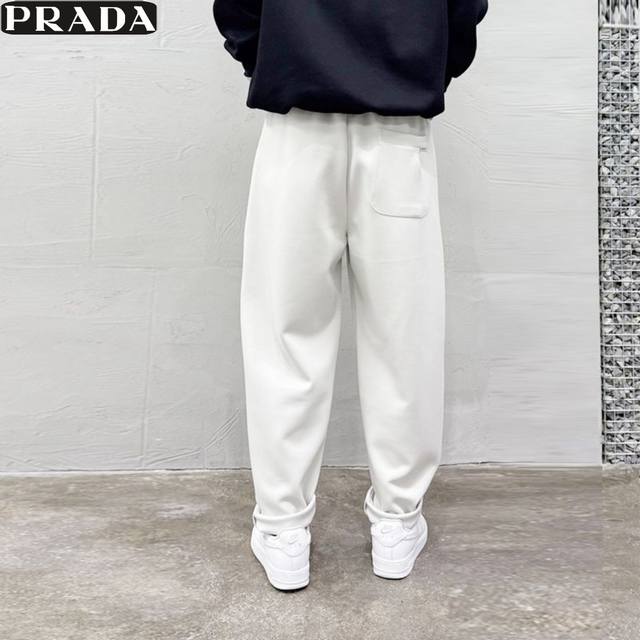 Prada Fall/Winter New Arrival, Unisex High-End Fashion Knitted Loose Casual Pants, Men's Elastic Waist Harem Pants, Men's Long Pants! Colors: Black, Gray, White Sizes: M-3XL