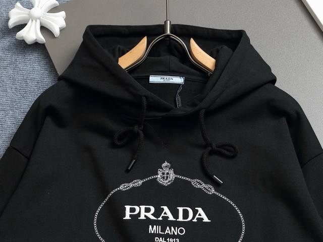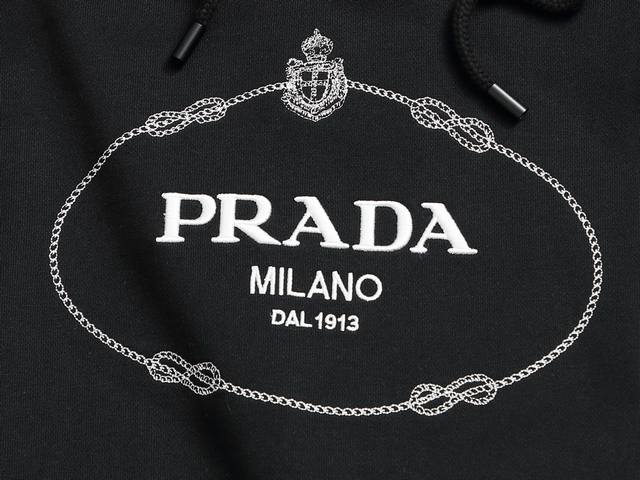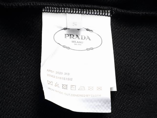 Prada hooded classic logo embroidery, upgraded, inspired by 80s retro style. Original fabric, same style as the official design. Custom-dyed fabric with a very comfortable feel. New spring/summer style, fashionable and unique, super versatile and beautiful. Weight 450g. Suitable for both men and women, a must-have. All tags, labels, and wash labels are complete. Colors: Apricot, Black. Sizes: Xs, S, M, L.