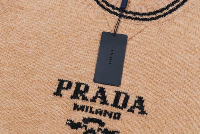 Prada Jacquard Logo Crew Neck Knit Sweater Brand Logo Design: The brand name "Prada" and "Milano" are displayed in white on the left chest, paired with the brand's iconic logo. Simple yet highly recognizable, it embodies the brand's "minimalist luxury" design language. Fit and Material: The crew neck knit sweater is comfortable and flattering to the neck. The fine knit material offers good warmth, reflecting the brand's commitment to high-quality fabrics and showcasing understated luxury. Color Scheme: Classic black as the base color, with a white brand logo creating a clean visual contrast. The color scheme is sophisticated and versatile, easily adaptable to various styles from business casual to understated luxury. Sizes: S, M, L, XL, XL