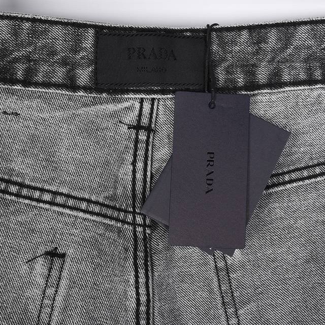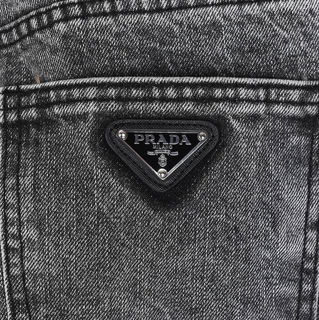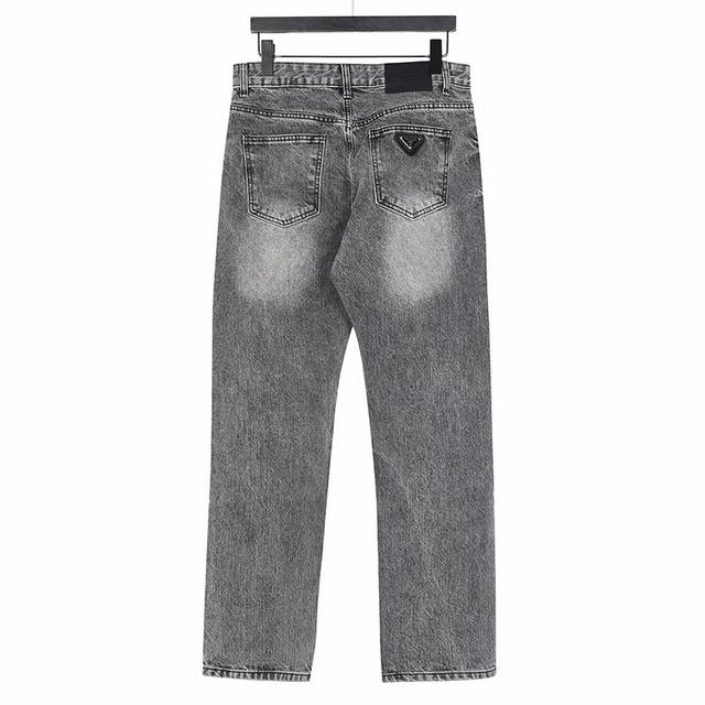 Prada Jeans with Triangle Logo on the Back DDD Prada's most amazing jeans of the year so far, featuring a heavy wash and numerous hidden details. These jeans are so perfect in both fit and style that it would take longer to make 20 short-sleeved shirts! Made with 12.2 oz premium denim, only denim of 12 oz or higher possesses that unique, high-end texture. The multiple washes and samples were very satisfactory. They look incredibly stylish, with full, three-dimensional embroidery, a delicate texture, and a cohesive, visually stunning design! Size: S-XL DDD