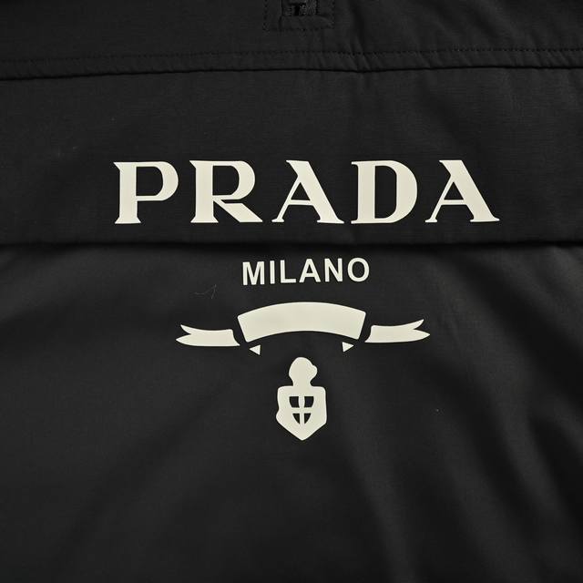 Prada logo half-zip hooded jacket. Made of 100% cotton greige fabric, this jacket undergoes pre-shrunk and shaping with high-temperature steam due to its elasticity. This ensures more precise dimensions when cutting the garment pieces. The overall fit and shape are perfectly replicated. The triangle logo on the chest is cold-cut; laser cutting would result in yellowing edges. Super versatile and a must-have item for this summer. Size: Xs-L.
