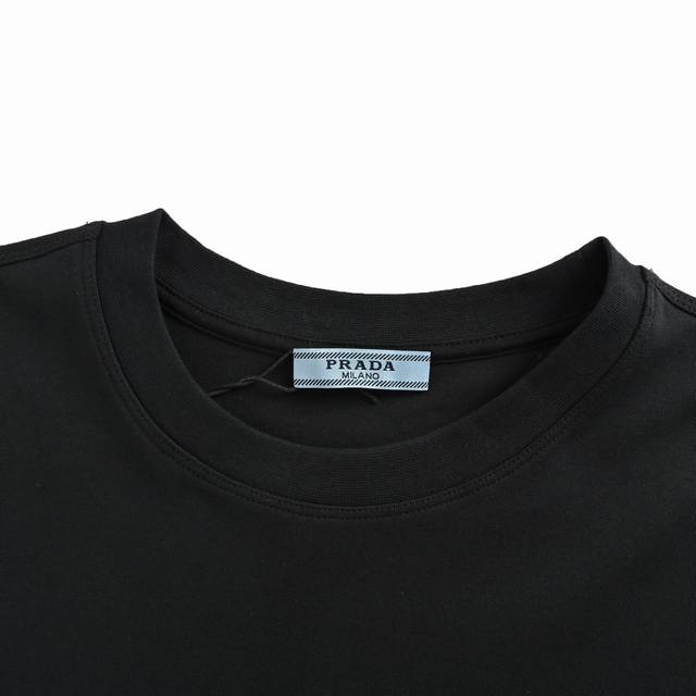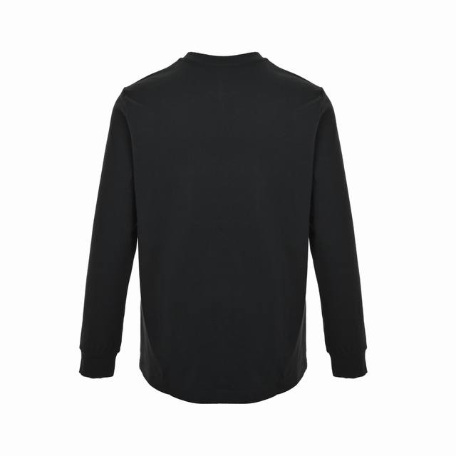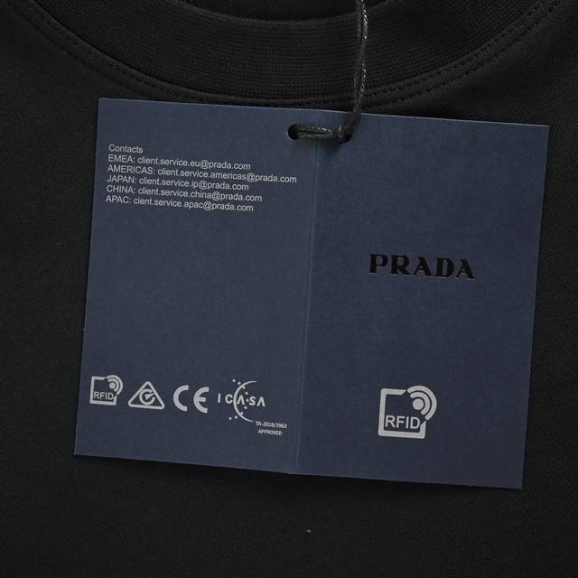 Prada Long-Sleeve T-Shirt with Embroidered Logo and Lettering on the Chest. Custom-woven, dyed, washed, soft long-staple cotton, weight weight missing], latest boutique style. A classic, versatile, and easy-to-match long-sleeve base layer. Features a metal triangle logo and a small chest pocket design