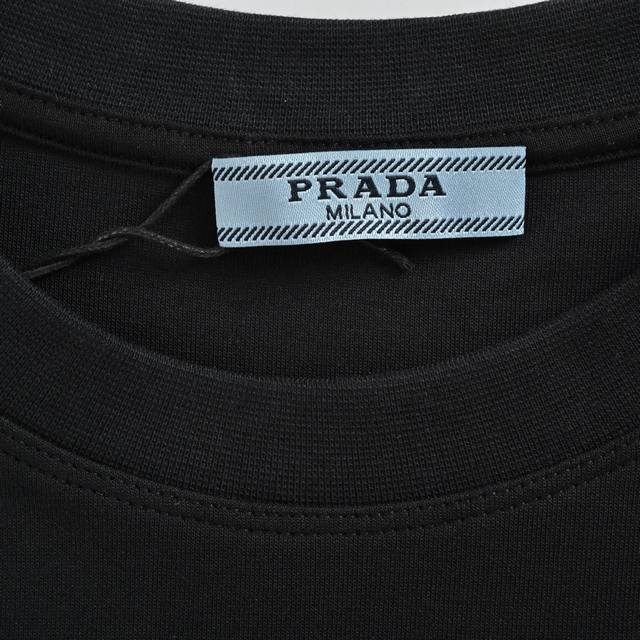 Prada Long-Sleeve T-Shirt with Embroidered Logo and Lettering on the Chest. Cus