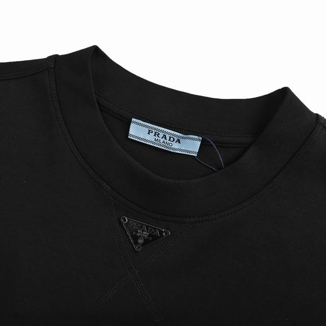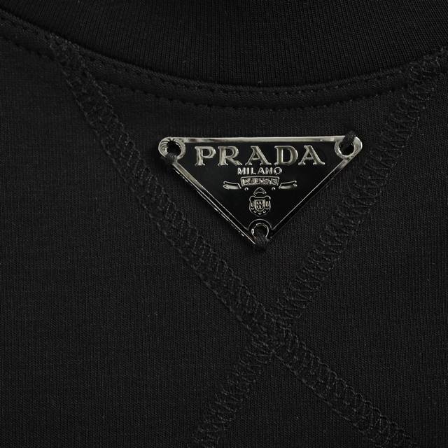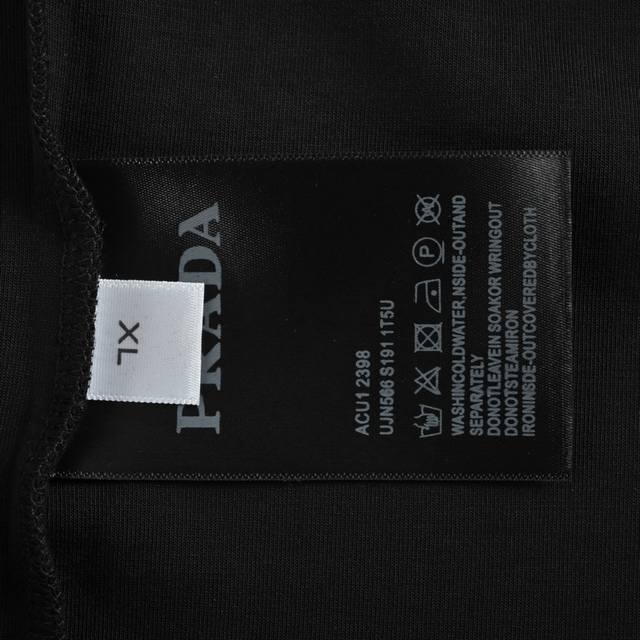 Prada long-sleeved T-shirt with hand-stitched triangle logo at the neckline. Custom-woven, dyed, washed, soft long-staple cotton, weight weight missing], latest boutique style. A simple, versatile, and classic long-sleeved base layer. A must-have T-shirt with a metal triangle logo, a simple yet sophisticated design! Extremely soft against the skin! Unisex! Suitable for all body types, truly a perfect blend of style and substance! Colors: Black, White. Size: M-XL
