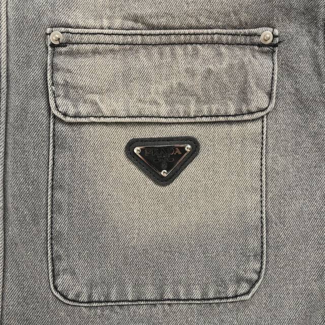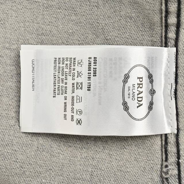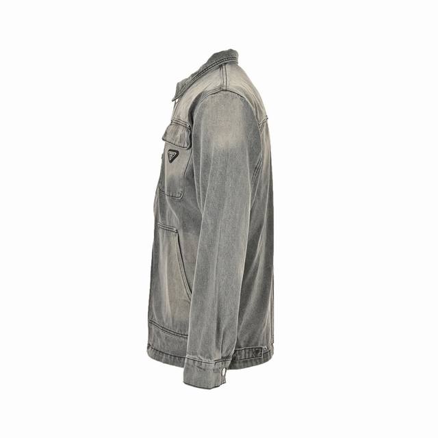 Prada Multi-Pocket Washed Denim Jacket (Ddd). The entire jacket is made of custom-woven heavyweight denim fabric, with independent hardware molds and a heavy-duty washing process. Exclusive details include fully embedded pockets, ensuring the fabric remains stiff and resistant to deformation, while the washing process enhances its feel. Imported high-end custom-made black mold materials are used for double high-temperature bonding, a highly complex and difficult process. The heavy-duty washed grey effect rivals the original. Additionally, all buttons are 7-button sets, identical to the original from the boutique. The washed denim fabric is comfortable and breathable, and the multiple processes create a premium feel. (Ddd) Size: S-XL (DDD)