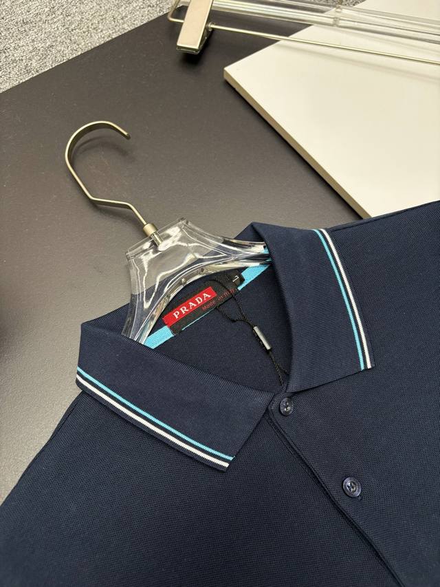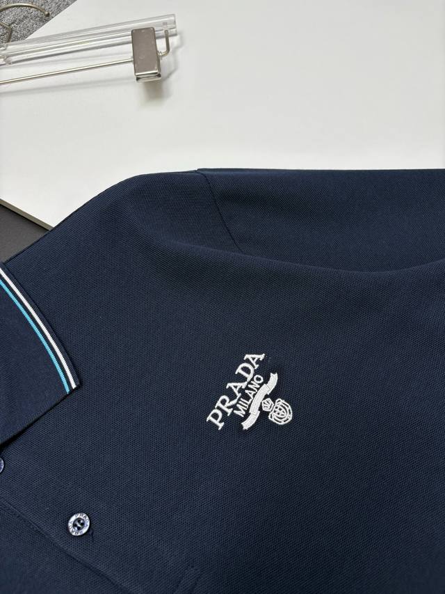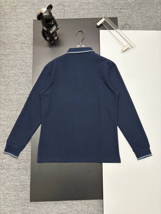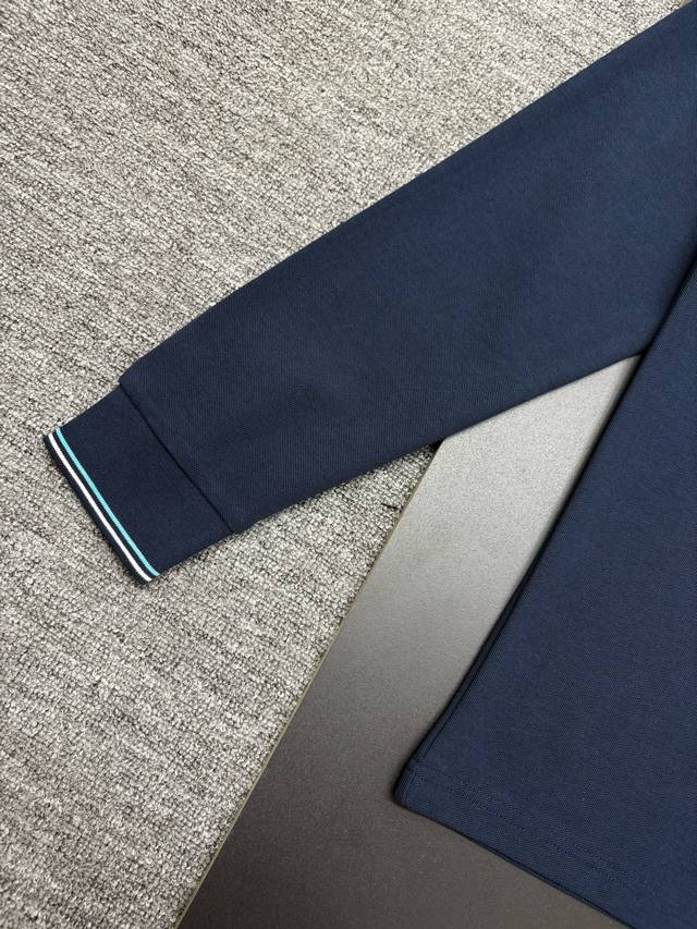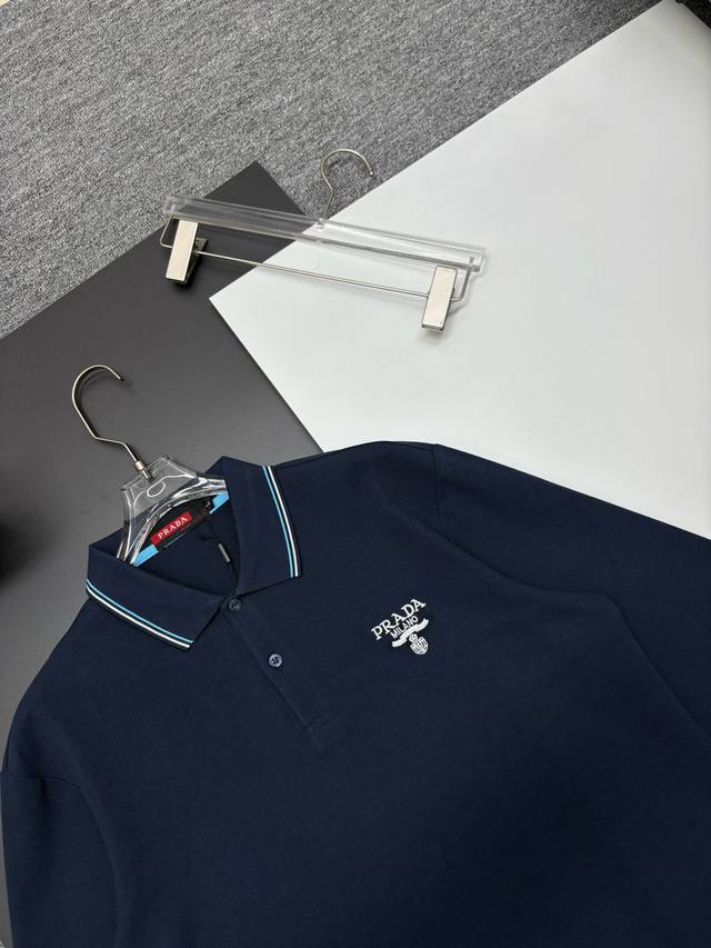 Prada New Embroidered Long-Sleeve Polo Shirt. Made with 250g pure cotton pique fabric, custom-dyed in the same vat, it feels incredibly comfortable and smooth. The cut is crisp and stylish. Produced by a top-tier brand's OEM factory, featuring imported Behringer embroidery machine for rich and textured embroidery. The ribbed cuffs and collar are made with imported yarn, ensuring long-lasting shape retention. A fashionable and unique autumn/winter style, super versatile and attractive. Suitable for both men and women, a must-have. Colors: Black, White, Royal Blue. Sizes: M-3XL.