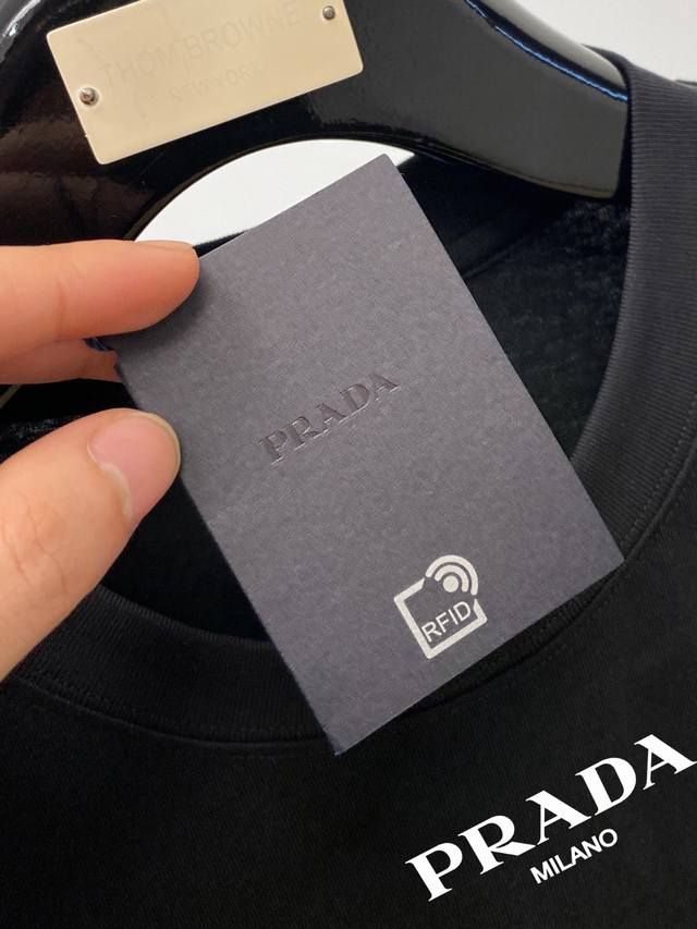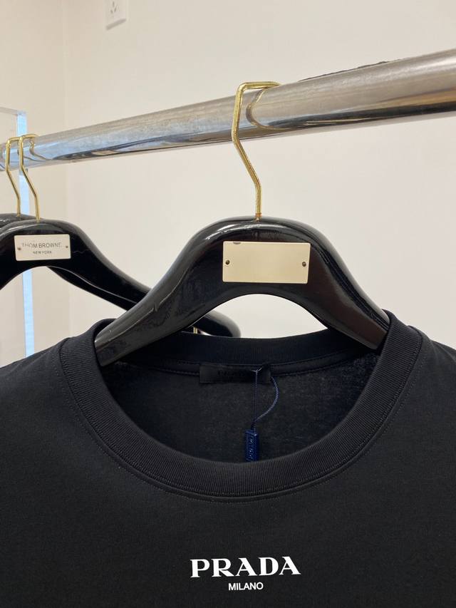 Prada, New Short-Sleeve T-Shirt, Stylish and Chic, Featuring a Logo Print on the Chest, Simple and Versatile. Made from 260g Special Pure Cotton, it's not only crisp and maintains a trendy silhouette but also incredibly comfortable. The yarn is finer, and sizes S-XL are available in a slightly loose fit.